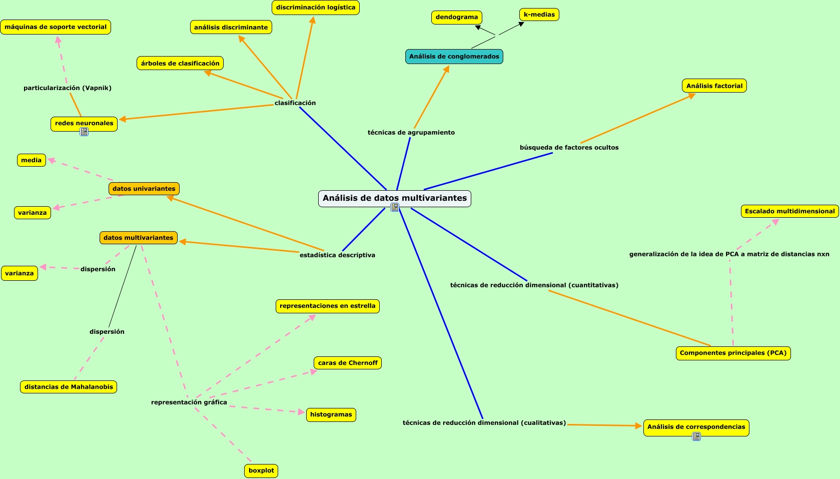 Este Cmap, tiene información relacionada con: TareaDistancia2, datos multivariantes representación gráfica boxplot, Análisis de datos multivariantes técnicas de reducción dimensional (cuantitativas) Componentes principales (PCA), Componentes principales (PCA) generalización de la idea de PCA a matriz de distancias nxn Escalado multidimensional, Análisis de datos multivariantes técnicas de reducción dimensional (cualitativas) Análisis de correspondencias, Análisis de datos multivariantes estadística descriptiva datos multivariantes, Análisis de conglomerados dendograma, Análisis de conglomerados k-medias, Análisis de datos multivariantes técnicas de agrupamiento Análisis de conglomerados, datos univariantes ???? media, datos multivariantes representación gráfica caras de Chernoff, Análisis de datos multivariantes clasificación discriminación logística, redes neuronales particularización (Vapnik) máquinas de soporte vectorial, Análisis de datos multivariantes estadística descriptiva datos univariantes, datos multivariantes dispersión distancias de Mahalanobis, Análisis de datos multivariantes búsqueda de factores ocultos Análisis factorial, Análisis de datos multivariantes clasificación redes neuronales, Análisis de datos multivariantes clasificación análisis discriminante, Análisis de datos multivariantes clasificación árboles de clasificación, datos multivariantes dispersión varianza, datos multivariantes representación gráfica histogramas