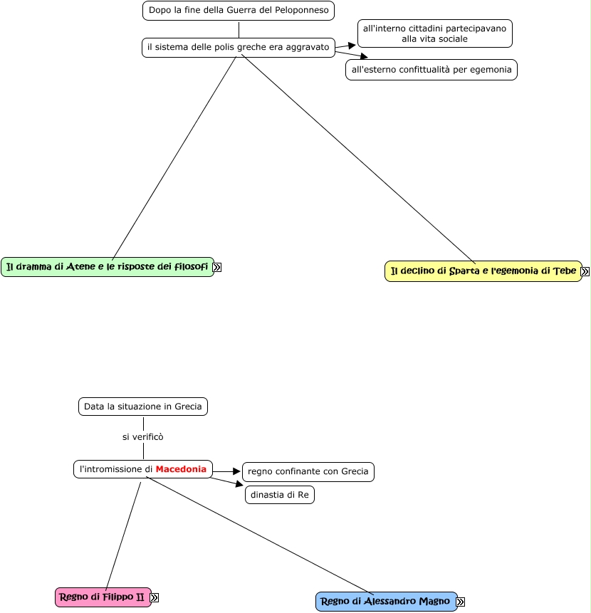 Questa Cmap, creata con IHMC CmapTools, contiene informazioni relative a: Declino di Sparta e Atene & Alessandro Magno (Vero Arioli), Atene situazione ancora più aggravata intensa attività dei sofisti, Granico Egitto, India l'esercito era stanco Aless. si ritirò a Babilonia, 2 schieramenti Isocrate, Alesssandro Magno figlio di Filippo portò avanti la spedizione contro Persia, l'intromissione di Macedonia regno confinante con Grecia, Granico Ippo, Pelopida nuova strategia Falange obliqua, Falange obliqua guerra a Leuttra, non impone dominio ma obbiettivo ambizioso: sconfiggere Persiani, Sparta situazione non certo migliore incapace di sostenere relazioni complicate, Pace del Re con Persia, Aless. si ritirò a Babilonia intromissione in Persia, allarme della Grecia ad Atene 2 schieramenti, Lega di Corinto poi organizzò grande spedizione, egemonia per 9 anni perchè Atene, dopo lunghissimo tempo sconfitta Sparta Declino, Filippo II voleva formare un grande impero che comprendesse Grecia, Granico a Granico I sconfitta, saccheggio Santuario di Delfi Filippo II protettore del Santuario e capo anfizionia delfica