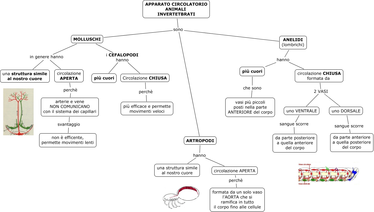 Questa Cmap, creata con IHMC CmapTools, contiene informazioni relative a: circolazione_invertebrati, uno DORSALE sangue scorre da parte anteriore a quella posteriore del corpo, MOLLUSCHI in genere hanno una struttura simile al nostro cuore, ARTROPODI hanno una struttura simile al nostro cuore, MOLLUSCHI in genere hanno circolazione APERTA, uno VENTRALE sangue scorre da parte posteriore a quella anteriore del corpo, MOLLUSCHI i CEFALOPODI hanno più cuori, APPARATO CIRCOLATORIO ANIMALI INVERTETBRATI sono MOLLUSCHI, circolazione CHIUSA formata da 2 VASI uno VENTRALE, ANELIDI (lombrichi) hanno più cuori, APPARATO CIRCOLATORIO ANIMALI INVERTETBRATI sono ARTROPODI, circolazione APERTA perchè arterie e vene NON COMUNICANO con il sistema dei capillari, arterie e vene NON COMUNICANO con il sistema dei capillari svantaggio non è efficente, permette movimenti lenti, Circolazione CHIUSA perchè più efficace e permette movimenti veloci, APPARATO CIRCOLATORIO ANIMALI INVERTETBRATI sono ANELIDI (lombrichi), ANELIDI (lombrichi) hanno circolazione CHIUSA formata da, circolazione CHIUSA formata da 2 VASI uno DORSALE, MOLLUSCHI i CEFALOPODI hanno Circolazione CHIUSA, circolazione APERTA perchè formata da un solo vaso l'AORTA che si ramifica in tutto il corpo fino alle cellule, ARTROPODI hanno circolazione APERTA, più cuori che sono vasi più piccoli posti nella parte ANTERIORE del corpo