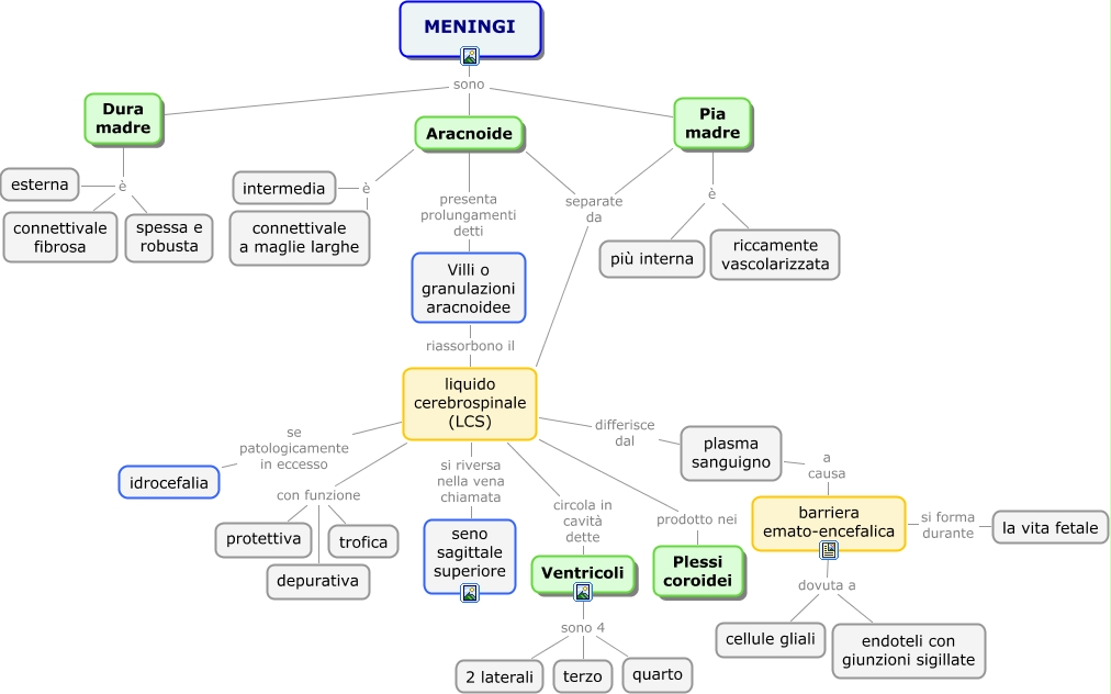 Questa Cmap, creata con IHMC CmapTools, contiene informazioni relative a: meningi, Dura madre è spessa e robusta, liquido cerebrospinale (LCS) con funzione protettiva, liquido cerebrospinale (LCS) differisce dal plasma sanguigno, Aracnoide è connettivale a maglie larghe, liquido cerebrospinale (LCS) circola in cavità dette Ventricoli, Pia madre separate da liquido cerebrospinale (LCS), Aracnoide separate da liquido cerebrospinale (LCS), Ventricoli sono 4 quarto, barriera emato-encefalica si forma durante la vita fetale, Dura madre è esterna, liquido cerebrospinale (LCS) se patologicamente in eccesso idrocefalia, Dura madre è connettivale fibrosa, Aracnoide è intermedia, Aracnoide presenta prolungamenti detti Villi o granulazioni aracnoidee, MENINGI sono Aracnoide, Pia madre è più interna, liquido cerebrospinale (LCS) prodotto nei Plessi coroidei, liquido cerebrospinale (LCS) si riversa nella vena chiamata seno sagittale superiore, Ventricoli sono 4 2 laterali, Ventricoli sono 4 terzo