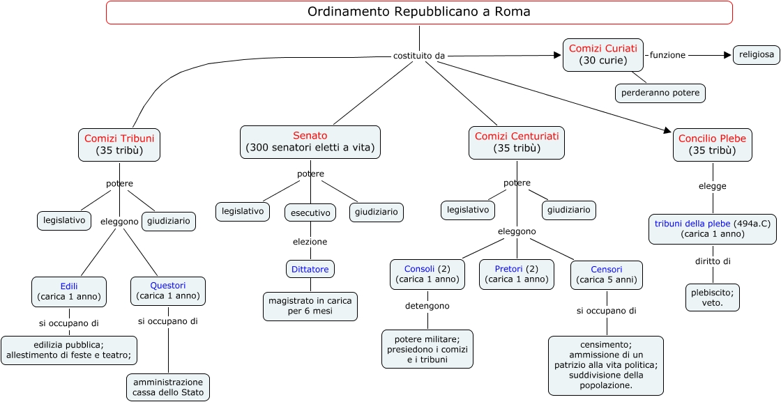 Questa Cmap, creata con IHMC CmapTools, contiene informazioni relative a: Ordinamento Repubblicano a Roma (Sonzogni), Comizi Tribuni (35 tribù) potere giudiziario, Senato (300 senatori eletti a vita) potere legislativo, Ordinamento Repubblicano a Roma costituito da Senato (300 senatori eletti a vita), Concilio Plebe (35 tribù) elegge tribuni della plebe (494a.C) (carica 1 anno), Comizi Centuriati (35 tribù) potere giudiziario, Comizi Centuriati (35 tribù) eleggono Censori (carica 5 anni), Comizi Curiati (30 curie) funzione religiosa, Comizi Tribuni (35 tribù) eleggono Edili (carica 1 anno), Ordinamento Repubblicano a Roma costituito da Comizi Tribuni (35 tribù), tribuni della plebe (494a.C) (carica 1 anno) diritto di plebiscito; veto., Senato (300 senatori eletti a vita) potere esecutivo, Comizi Curiati (30 curie) ???? perderanno potere, Comizi Centuriati (35 tribù) eleggono Consoli (2) (carica 1 anno), Senato (300 senatori eletti a vita) elezione Dittatore, Comizi Tribuni (35 tribù) potere legislativo, Censori (carica 5 anni) si occupano di censimento; ammissione di un patrizio alla vita politica; suddivisione della popolazione., Consoli (2) (carica 1 anno) detengono potere militare; presiedono i comizi e i tribuni, Senato (300 senatori eletti a vita) potere giudiziario, Edili (carica 1 anno) si occupano di edilizia pubblica; allestimento di feste e teatro;, Comizi Tribuni (35 tribù) eleggono Questori (carica 1 anno)