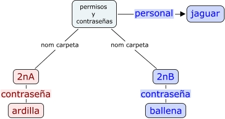 Este Cmap, tiene información relacionada con: carpetas alumnes, permisos y contraseñas personal jaguar, 2nA contraseña ardilla, permisos y contraseñas nom carpeta 2nA, permisos y contraseñas nom carpeta 2nB, 2nB contraseña ballena