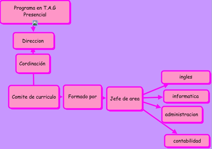Este Cmap, tiene información relacionada con: mapa Rosa, Comite de curriculo ???? Formado por, Jefe de area ???? ingles, Comite de curriculo ???? Cordinación, Formado por ???? Jefe de area, Jefe de area ???? administracion, Jefe de area ???? informatica, Jefe de area ???? contabilidad, Programa en T.A.G Presencial ???? Direccion