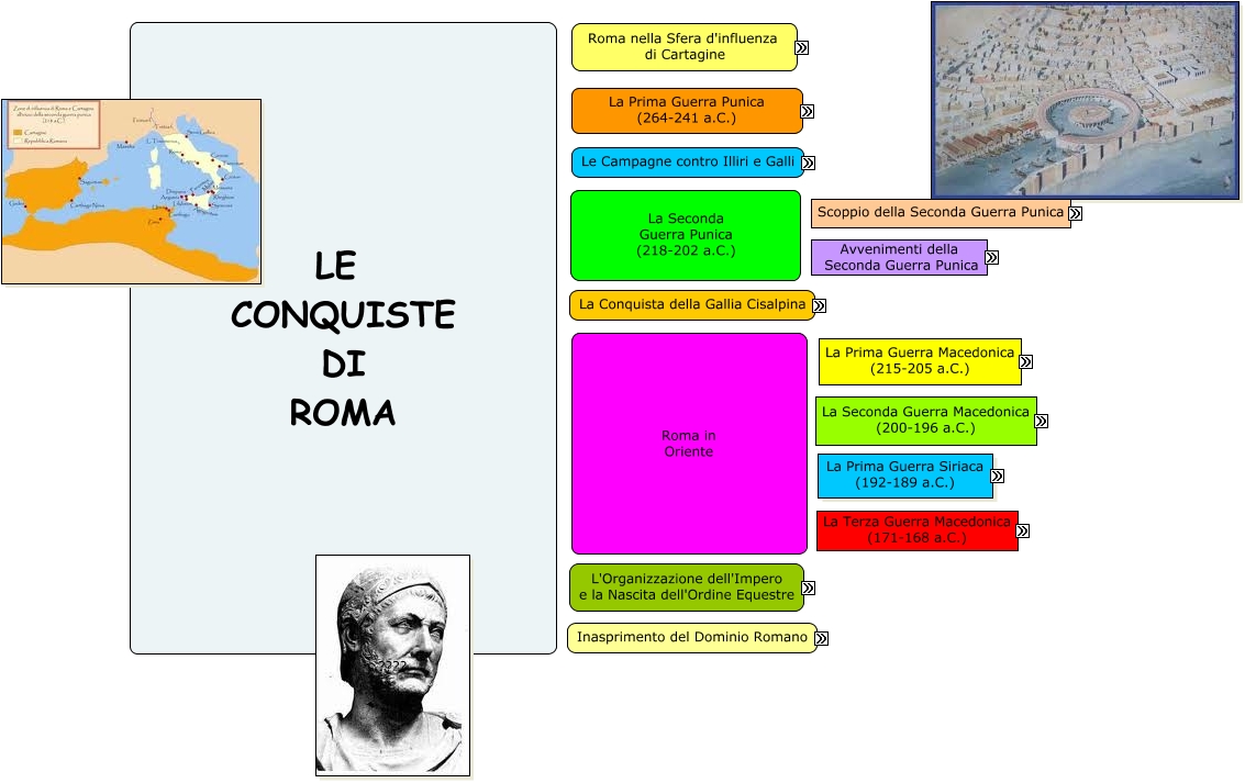 Questa Cmap, creata con IHMC CmapTools, contiene informazioni relative a: Roma Potenza Mediterranea [Le Conquiste di Roma] Manzoni, Un Inasprimento del proprio Dominio che sfociò: Nella Terza Guerra Punica (149-146 a.C.), Cartagine e, successivamente, temendo la presenza sul territorio di quest'ultimi, a: ROMA, Il Figlio Perseo che assunse un: Atteggiamento Moderato, PROVINCE SARDEGNA, Tito Quinto Flaminino che, con le sue truppe, ottenne un'importante vittoria a: CINOSCEFALE (197 a.c.), PRIMA GUERRA PUNICA (264-241 a.C.) che si concluse, in seguito alle vittorie romane a: Milazzo, ROMA che ne approfittò: Per Conquistare tutta la Sicilia, PRIMA GUERRA PUNICA (264-241 a.C.) che si concluse, in seguito alle vittorie romane a: Capo Ecnomo, La Fine del Regno Macedone diviso in: 4 Repubbliche, Roma al termine di questi conflitti, fu protgonista di: Un Inasprimento del proprio Dominio, La Battaglia di Pidna nella quale trionfò il generale: Lucio Emilio Paolo, ANNIBALE e che, però, non riuscì a farsi alleato delle: Popolazioni del Centro (Etruschi, Latini..), Prima Guerra Siriaca (192-189 a.C.) nella quale, Roma ottenne importanti vittorie a: Magnesia (189 a.C.), PUBLIO CORNELIO SCIPIONE che, dopo aver portato, per sua volontà, lo scenario lontano dall'Italia, ottenne una grande vittoria a: ZAMA, ZAMA in seguito alla quale venne ribattezzato: "L'AFRICANO", PROVINCE I cui abitanti divennero: Sudditi, Parteggiava per Annibale determinando lo scoppio della: PRIMA GUERRA MACEDONICA (215-205 a.C.), ANNIBALE il quale, nel 183 a.C., Si Uccise, Basava la propria ricchezza su: Importazione Oro, Avorio, Stagno, Vittoria di Roma che inflisse pesanti condizioni di pace a Cartagine, quali: 260 Tonnellate d'argento come indennità bellica