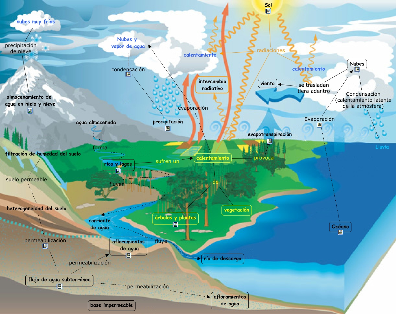 Este Cmap, tiene información relacionada con: Ciclo del agua - Jose Luis Alvarez Lopez, Océano Evaporación Nubes, calentamiento de vegetación, calentamiento evaporación Nubes y vapor de agua, calentamiento de árboles y plantas, flujo de agua subterránea permeabilización afloramientos de agua, filtración de humedad del suelo suelo permeable heterogeneidad del suelo, agua almacenada forma rios y lagos, rios y lagos sufren un calentamiento, corriente de agua fluye río de descarga, Sol radiaciones calentamiento, heterogeneidad del suelo permeabilización flujo de agua subterránea, rios y lagos fluyen corriente de agua, Nubes Condensación (calentamiento latente de la atmósfera) Lluvia, Sol radiaciones calentamiento, nubes muy frías precipitación de nieve almacenamiento de agua en hielo y nieve, calentamiento provoca evapotranspiración, flujo de agua subterránea permeabilización afloramientos de agua, Nubes y vapor de agua condensación precipitación, Sol radiaciones calentamiento, Nubes se trasladan tiera adentro viento