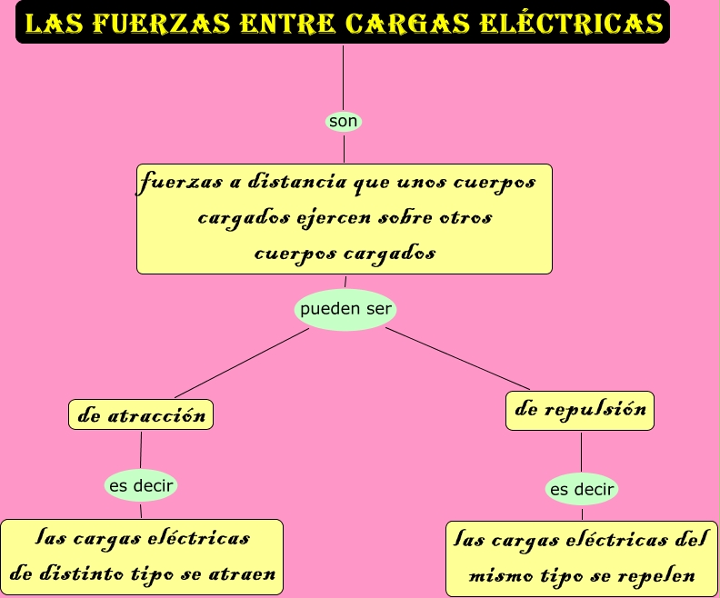 Este Cmap, tiene información relacionada con: Las fuerzas entre cargas eléctricas, fuerzas a distancia que unos cuerpos cargados ejercen sobre otros cuerpos cargados pueden ser de atracción, Las fuerzas entre cargas eléctricas son fuerzas a distancia que unos cuerpos cargados ejercen sobre otros cuerpos cargados, de repulsión es decir las cargas eléctricas del mismo tipo se repelen, fuerzas a distancia que unos cuerpos cargados ejercen sobre otros cuerpos cargados pueden ser de repulsión, de atracción es decir las cargas eléctricas de distinto tipo se atraen