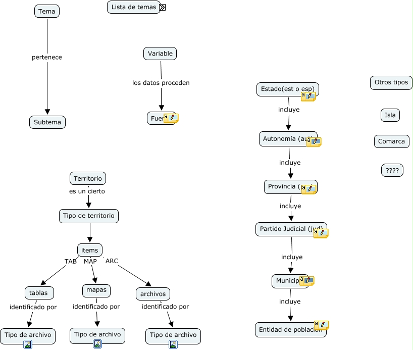 Este Cmap, tiene información relacionada con: Población de España, Provincia (pro) incluye Partido Judicial (jud), archivos identificado por Tipo de archivo, items ARC archivos, Tipo de territorio ???? items, movimiento natural son Nacimientos, Variable los datos proceden Fuente, Municipio incluye Entidad de población, Autonomía (aut) incluye Provincia (pro), Estado(est o esp) incluye Autonomía (aut), tablas identificado por Tipo de archivo, items TAB tablas, movimiento natural son Defunciones, Tema pertenece Subtema, Partido Judicial (jud) incluye Municipio, mapas identificado por Tipo de archivo, Territorio es un cierto Tipo de territorio