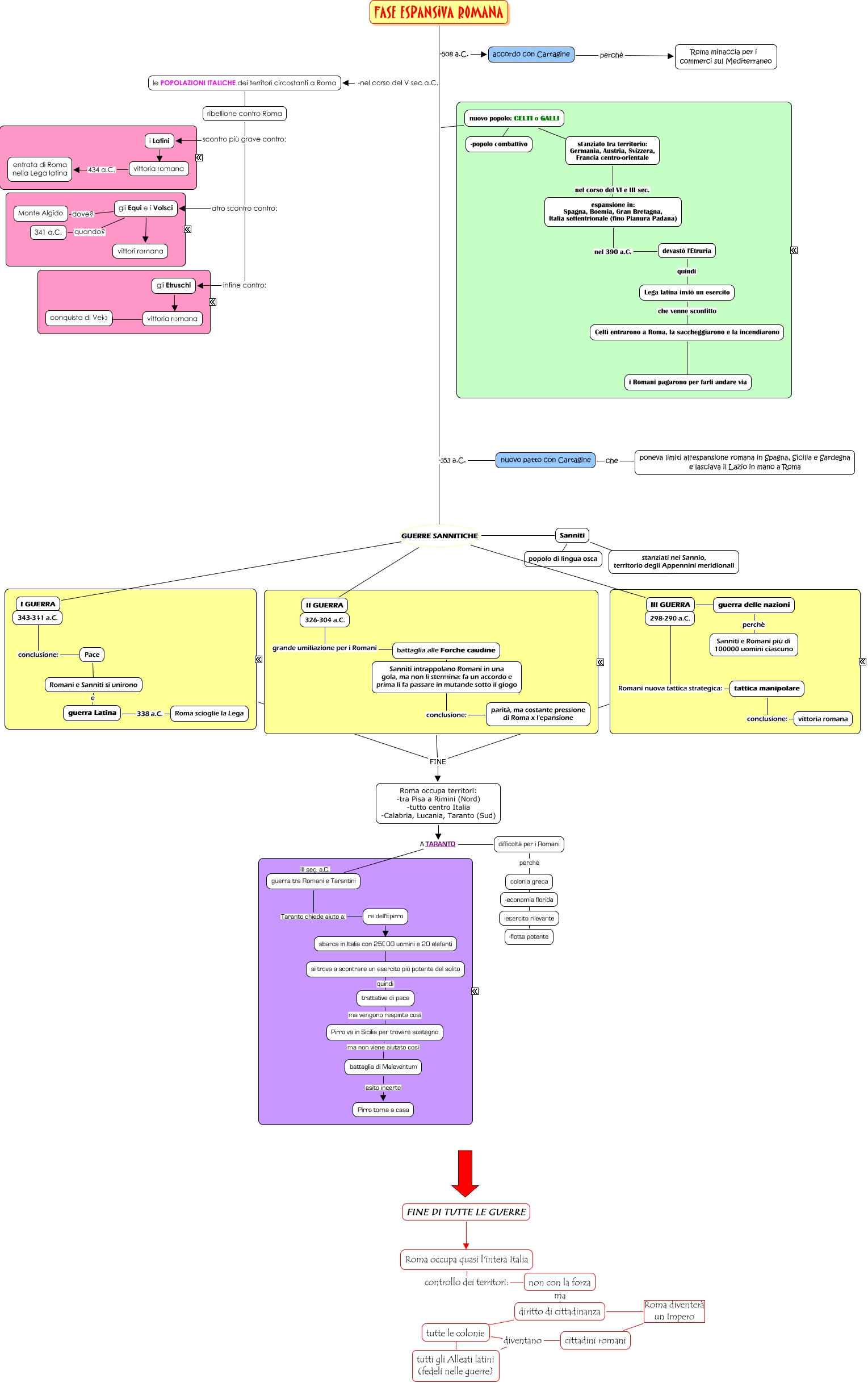 Questa Cmap, creata con IHMC CmapTools, contiene informazioni relative a: Espansione romana (Vero Arioli), battaglia di Maleventum esito incerto Pirro torna a casa, vittoria romana conquista di Veio, gli Equi e i Volsci dove? Monte Algido, difficoltà per i Romani perchè -economia florida, Celti entrarono a Roma, la saccheggiarono e la incendiarono i Romani pagarono per farli andare via, nuovo patto con Cartagine che poneva limiti all'espansione romana in Spagna, Sicilia e Sardegna e lasciava il Lazio in mano a Roma, sbarca in Italia con 25000 uomini e 20 elefanti quindi si trova a scontrare un esercito più potente del solito, Pirro va in Sicilia per trovare sostegno ma non viene aiutato così battaglia di Maleventum, Roma occupa quasi l'intera Italia controllo dei territori: non con la forza, FASE ESPANSIVA ROMANA GUERRE SANNITICHE I GUERRA, III GUERRA ???? guerra delle nazioni, diritto di cittadinanza ???? tutte le colonie, difficoltà per i Romani perchè -flotta potente, non con la forza ma diritto di cittadinanza, vittoria romana 434 a.C. entrata di Roma nella Lega latina, guerra tra Romani e Tarantini III sec. a.C., ribellione contro Roma scontro più grave contro: i Latini, re dell'Epirro sbarca in Italia con 25000 uomini e 20 elefanti, FASE ESPANSIVA ROMANA GUERRE SANNITICHE Sanniti, II GUERRA grande umiliazione per i Romani battaglia alle Forche caudine
