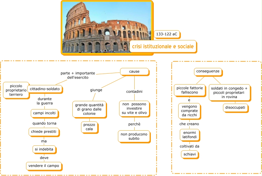 Questa Cmap, creata con IHMC CmapTools, contiene informazioni relative a: crisi della repubblica_tassis, cause contadini non possono investire su vite e olivo, cause giunge grande quantità di grano dalle colonie, cause parte + importante dell'esercito cittadino-soldato, piccole fattorie falliscono e vengono comprate da ricchi, enormi latifondi coltivati da schiavi, chiede prestiti ma si indebita, soldati in congedo + piccoli proprietari in rovina disoccupati, campi incolti quando torna chiede prestiti, si indebita deve vendere il campo, grande quantità di grano dalle colonie prezzo cala, vengono comprate da ricchi che creano enormi latifondi, conseguenze piccole fattorie falliscono, non possono investire su vite e olivo perchè non producono subito, conseguenze soldati in congedo + piccoli proprietari in rovina, cittadino-soldato durante la guerra campi incolti