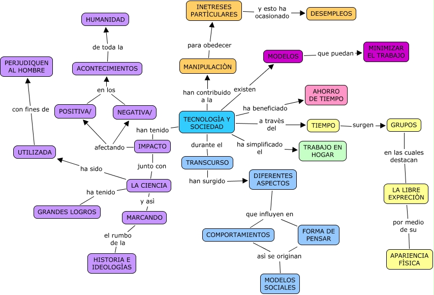 Este Cmap, tiene información relacionada con: tEcNOIa I SOcIiEdaD, POSITIVA/ en los ACONTECIMIENTOS, TECNOLOGÌA Y SOCIEDAD han tenido IMPACTO, IMPACTO junto con LA CIENCIA, TIEMPO surgen GRUPOS, TECNOLOGÌA Y SOCIEDAD ha simplificado el TRABAJO EN HOGAR, TRANSCURSO han surgido DIFERENTES ASPECTOS, MARCANDO el rumbo de la HISTORIA E IDEOLOGÌAS, LA CIENCIA ha sido UTILIZADA, TECNOLOGÌA Y SOCIEDAD existen MODELOS, GRUPOS en las cuales destacan LA LIBRE EXPRECIÒN, LA CIENCIA y asì MARCANDO, FORMA DE PENSAR asì se originan MODELOS SOCIALES, TECNOLOGÌA Y SOCIEDAD durante el TRANSCURSO, TECNOLOGÌA Y SOCIEDAD han contribuido a la MANIPULACIÒN, DIFERENTES ASPECTOS que influyen en FORMA DE PENSAR, IMPACTO afectando NEGATIVA/, UTILIZADA con fines de PERJUDIQUEN AL HOMBRE, LA CIENCIA ha tenido GRANDES LOGROS, IMPACTO afectando POSITIVA/, ACONTECIMIENTOS de toda la HUMANIDAD