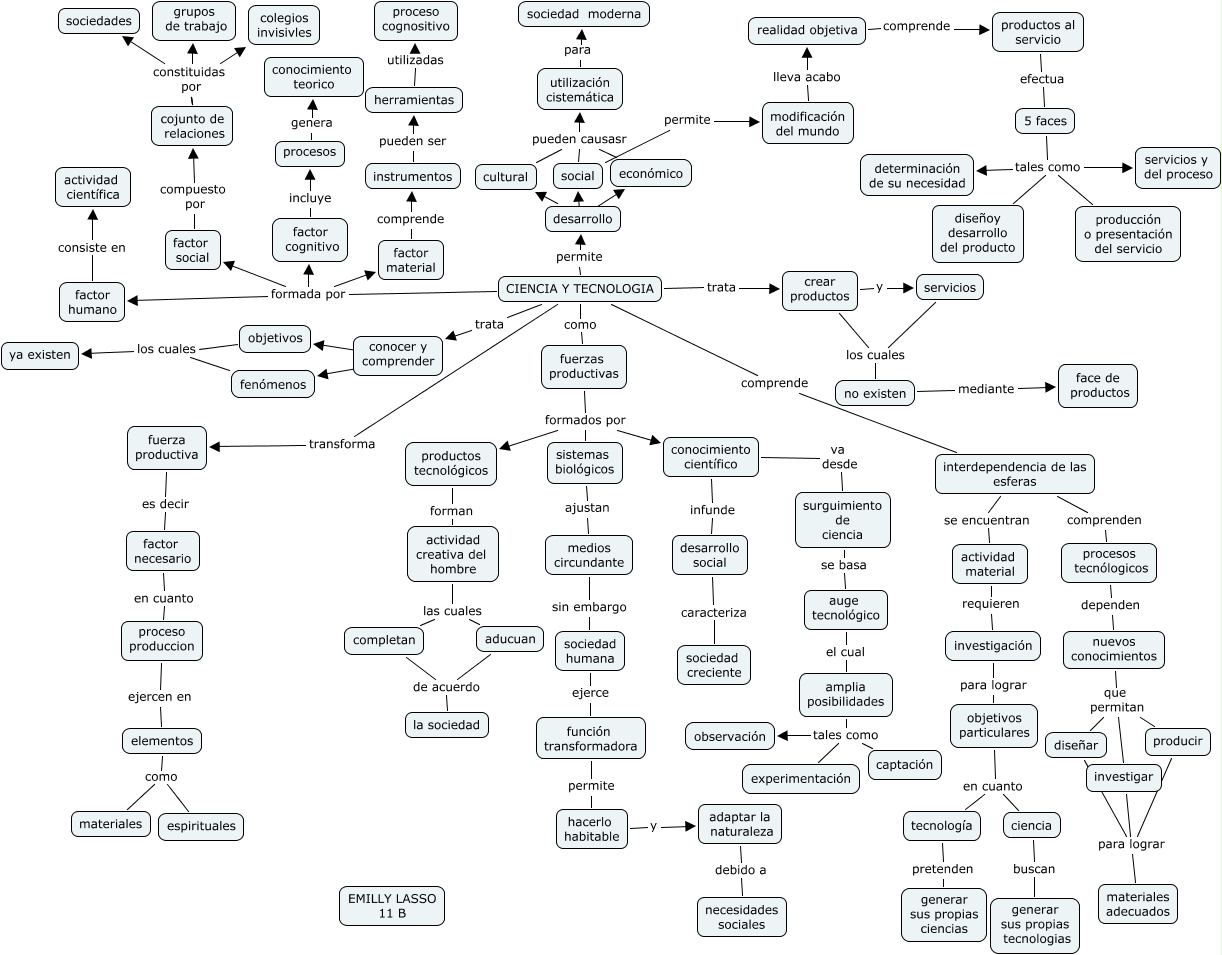 Este Cmap, tiene información relacionada con: emilly lasso, herramientas utilizadas proceso cognositivo, CIENCIA Y TECNOLOGIA permite desarrollo, actividad creativa del hombre las cuales completan, objetivos los cuales ya existen, completan de acuerdo la sociedad, factor humano consiste en actividad científica, investigar para lograr materiales adecuados, cojunto de relaciones constituidas por grupos de trabajo, CIENCIA Y TECNOLOGIA formada por factor cognitivo, cojunto de relaciones constituidas por colegios invisivles, fuerza productiva es decir factor necesario, función transformadora permite hacerlo habitable, cojunto de relaciones constituidas por sociedades, actividad creativa del hombre las cuales aducuan, conocer y comprender ???? fenómenos, CIENCIA Y TECNOLOGIA formada por factor material, 5 faces tales como producción o presentación del servicio, cojunto de relaciones constituidas por grupos de trabajo, diseñar para lograr materiales adecuados, objetivos particulares en cuanto tecnología