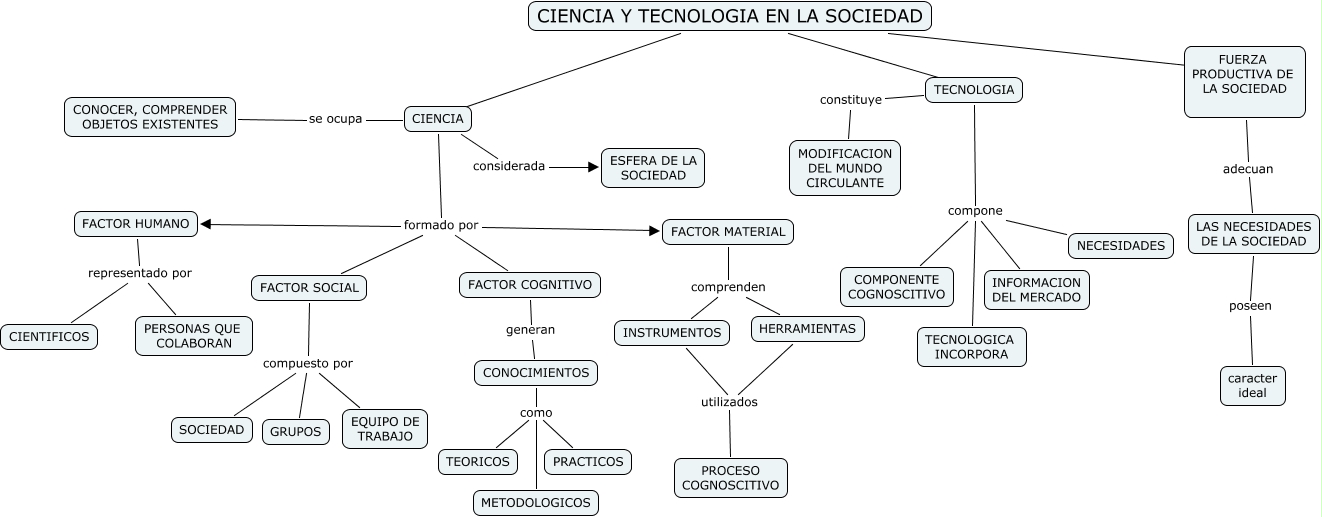 Este Cmap, tiene información relacionada con: ross criollo, CIENCIA formado por FACTOR HUMANO, CIENCIA se ocupa CONOCER, COMPRENDER OBJETOS EXISTENTES, FACTOR MATERIAL comprenden HERRAMIENTAS, FUERZA PRODUCTIVA DE LA SOCIEDAD adecuan LAS NECESIDADES DE LA SOCIEDAD, CIENCIA formado por FACTOR MATERIAL, CIENCIA considerada ESFERA DE LA SOCIEDAD, FACTOR SOCIAL compuesto por GRUPOS, FACTOR SOCIAL compuesto por EQUIPO DE TRABAJO, TECNOLOGIA constituye MODIFICACION DEL MUNDO CIRCULANTE, INSTRUMENTOS utilizados HERRAMIENTAS, LAS NECESIDADES DE LA SOCIEDAD poseen caracter ideal, CIENCIA Y TECNOLOGIA EN LA SOCIEDAD ???? CIENCIA, CONOCIMIENTOS como PRACTICOS, FACTOR HUMANO representado por PERSONAS QUE COLABORAN, TECNOLOGIA compone NECESIDADES, TECNOLOGIA compone COMPONENTE COGNOSCITIVO, CIENCIA formado por FACTOR COGNITIVO, FACTOR HUMANO representado por CIENTIFICOS, CIENCIA Y TECNOLOGIA EN LA SOCIEDAD ???? TECNOLOGIA, FACTOR COGNITIVO generan CONOCIMIENTOS