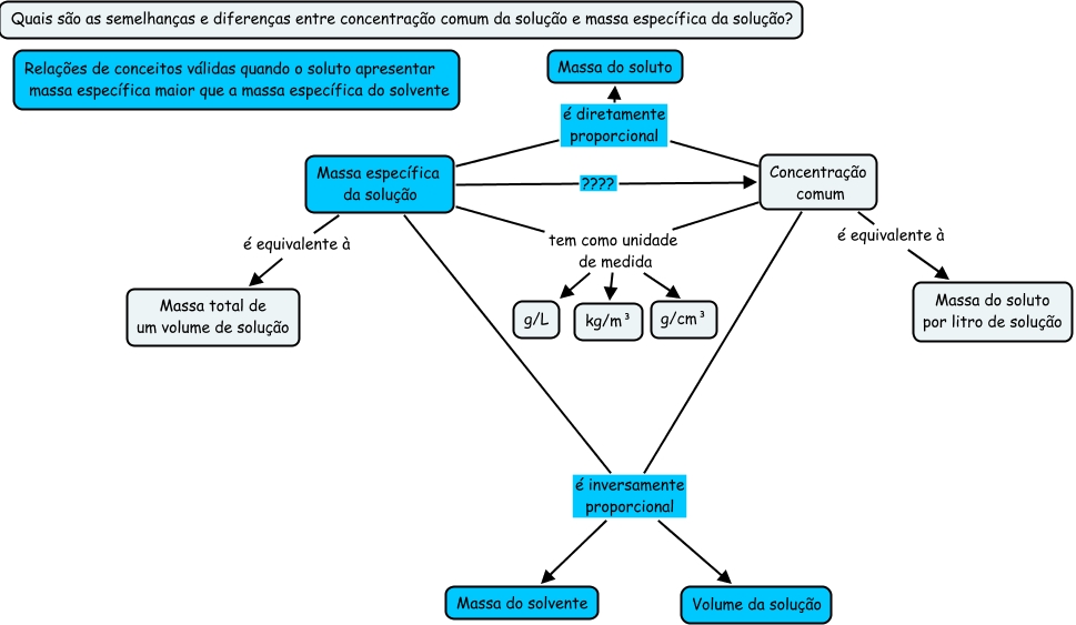 Esse mapa conceitual, produzido no IHMC CmapTools, tem a informação relacionada a: Concentração e massa específica 2C 2011, Massa específica da solução tem como unidade de medida kg/m³, Concentração comum é diretamente proporcional Massa do soluto, Massa específica da solução é diretamente proporcional Massa do soluto, Massa específica da solução tem como unidade de medida g/L, Concentração comum tem como unidade de medida g/cm³, Massa específica da solução ???? Concentração comum, Concentração comum tem como unidade de medida kg/m³, Massa específica da solução é inversamente proporcional Volume da solução, Concentração comum é inversamente proporcional Massa do solvente, Massa específica da solução tem como unidade de medida g/cm³, Massa específica da solução é inversamente proporcional Massa do solvente, Massa específica da solução é equivalente à Massa total de um volume de solução, Concentração comum tem como unidade de medida g/L, Concentração comum é inversamente proporcional Volume da solução, Concentração comum é equivalente à Massa do soluto por litro de solução