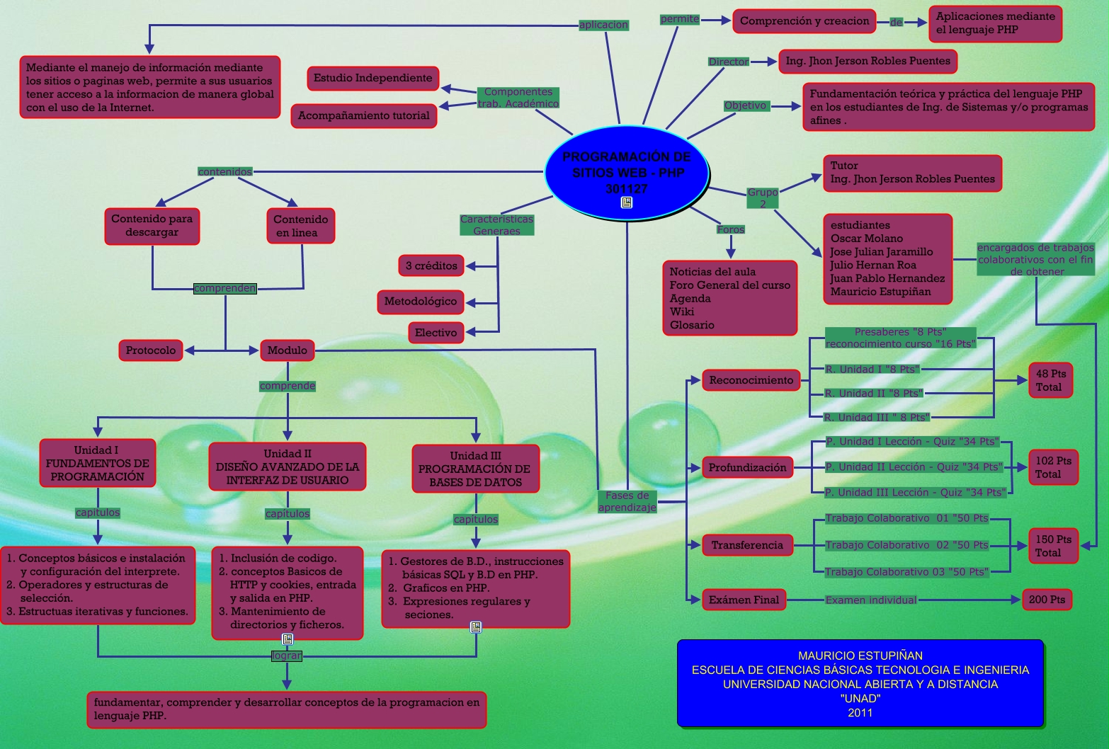 Este Cmap, tiene información relacionada con: prog. web, Contenido para descargar comprenden Modulo, Reconocimiento R. Unidad III " 8 Pts" 48 Pts Total, PROGRAMACIÓN DE SITIOS WEB - PHP 301127 Caracteristicas Generaes 3 créditos, Reconocimiento R. Unidad I "8 Pts" 48 Pts Total, PROGRAMACIÓN DE SITIOS WEB - PHP 301127 Objetivo Fundamentación teórica y práctica del lenguaje PHP en los estudiantes de Ing. de Sistemas y/o programas afines ., PROGRAMACIÓN DE SITIOS WEB - PHP 301127 contenidos Contenido en linea, PROGRAMACIÓN DE SITIOS WEB - PHP 301127 Fases de aprendizaje Transferencia, Transferencia Trabajo Colaborativo 03 "50 Pts" 150 Pts Total, Modulo Fases de aprendizaje Transferencia, Contenido para descargar comprenden Protocolo, Contenido en linea comprenden Modulo, PROGRAMACIÓN DE SITIOS WEB - PHP 301127 Caracteristicas Generaes Electivo, PROGRAMACIÓN DE SITIOS WEB - PHP 301127 Director Ing. Jhon Jerson Robles Puentes, Exámen Final Examen individual 200 Pts, PROGRAMACIÓN DE SITIOS WEB - PHP 301127 Fases de aprendizaje Reconocimiento, PROGRAMACIÓN DE SITIOS WEB - PHP 301127 Fases de aprendizaje Profundización, Modulo comprende Unidad III PROGRAMACIÓN DE BASES DE DATOS, PROGRAMACIÓN DE SITIOS WEB - PHP 301127 Grupo 2 estudiantes Oscar Molano Jose Julian Jaramillo Julio Hernan Roa Juan Pablo Hernandez Mauricio Estupiñan, Modulo Fases de aprendizaje Reconocimiento, PROGRAMACIÓN DE SITIOS WEB - PHP 301127 contenidos Contenido para descargar