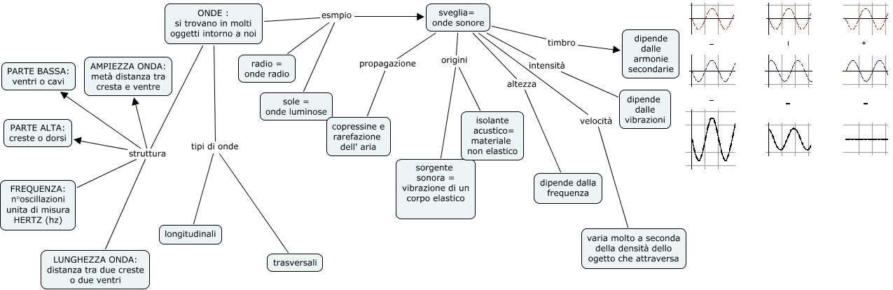 Questa Cmap, creata con IHMC CmapTools, contiene informazioni relative a: giova onde (2), ONDE : si trovano in molti oggetti intorno a noi struttura LUNGHEZZA ONDA: distanza tra due creste o due ventri, sveglia= onde sonore origini sorgente sonora = vibrazione di un corpo elastico, ONDE : si trovano in molti oggetti intorno a noi struttura FREQUENZA: n°oscillazioni unita di misura HERTZ (hz), ONDE : si trovano in molti oggetti intorno a noi tipi di onde trasversali, ONDE : si trovano in molti oggetti intorno a noi struttura PARTE BASSA: ventri o cavi, ONDE : si trovano in molti oggetti intorno a noi esmpio sole = onde luminose, ONDE : si trovano in molti oggetti intorno a noi struttura PARTE ALTA: creste o dorsi, sveglia= onde sonore velocità varia molto a seconda della densità dello ogetto che attraversa, sveglia= onde sonore altezza dipende dalla frequenza, ONDE : si trovano in molti oggetti intorno a noi esmpio radio = onde radio, ONDE : si trovano in molti oggetti intorno a noi esmpio sveglia= onde sonore, sveglia= onde sonore timbro dipende dalle armonie secondarie, sveglia= onde sonore intensità dipende dalle vibrazioni, ONDE : si trovano in molti oggetti intorno a noi tipi di onde longitudinali, sveglia= onde sonore origini isolante acustico= materiale non elastico, ONDE : si trovano in molti oggetti intorno a noi struttura AMPIEZZA ONDA: metà distanza tra cresta e ventre, sveglia= onde sonore propagazione copressine e rarefazione dell' aria