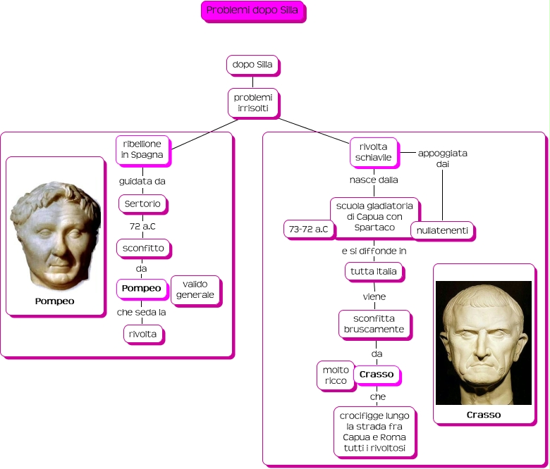 Questa Cmap, creata con IHMC CmapTools, contiene informazioni relative a: Pompeo e crasso _tassis, problemi irrisolti rivolta schiavile, Crasso che crocifigge lungo la strada fra Capua e Roma tutti i rivoltosi, tutta Italia viene sconfitta bruscamente, scuola gladiatoria di Capua con Spartaco e si diffonde in tutta Italia, rivolta schiavile appoggiata dai nullatenenti, rivolta schiavile nasce dalla scuola gladiatoria di Capua con Spartaco, ribellione in Spagna guidata da Sertorio, dopo Silla problemi irrisolti, Pompeo che seda la rivolta, problemi irrisolti ribellione in Spagna, sconfitto da Pompeo, Sertorio 72 a.C sconfitto, sconfitta bruscamente da Crasso