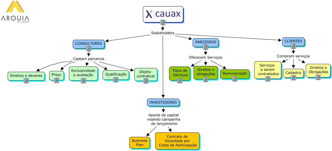 Esse mapa conceitual, produzido no IHMC CmapTools, tem a informação relacionada a: Mapa CAUAX, CLIENTES Compram serviços Cadastro, CONSULTORES Captam parceiros Preço, PARCEIROS Oferecem Serviços Direitos e obrigações, PARCEIROS Oferecem Serviços Tipos de Serviços, INVESTIDORES Aporte de capital visando campanha de lançamento Business Plan, CONSULTORES Captam parceiros Direitos e deveres, CLIENTES Compram serviços Serviços a serem contratados, Stakeholders INVESTIDORES, Stakeholders CLIENTES, Stakeholders CONSULTORES, CONSULTORES Captam parceiros Exclusividade e avaliação, INVESTIDORES Aporte de capital visando campanha de lançamento Contrato de Sociedade por Cotas de Participação, PARCEIROS Oferecem Serviços Remuneração, CONSULTORES Captam parceiros Objeto contratual, CONSULTORES Captam parceiros Qualificação, CLIENTES Compram serviços Direitos e Obrigações, Stakeholders PARCEIROS