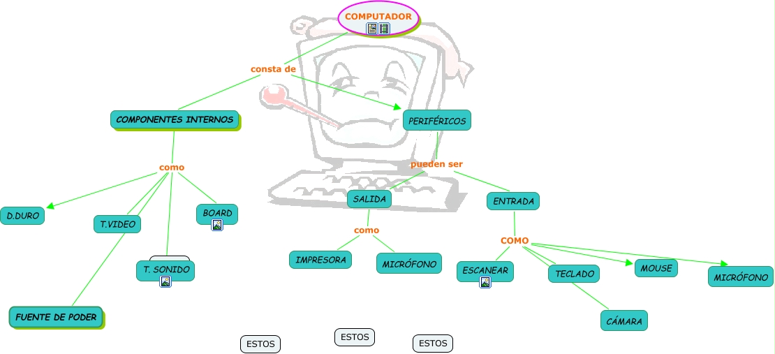 Este Cmap, tiene información relacionada con: Francisco, ENTRADA COMO MICRÓFONO, PERIFÉRICOS pueden ser ENTRADA, SALIDA como IMPRESORA, COMPONENTES INTERNOS como T.VIDEO, ENTRADA COMO CÁMARA, ENTRADA COMO MOUSE, ENTRADA COMO TECLADO, SALIDA como MICRÓFONO, COMPONENTES INTERNOS como BOARD, COMPUTADOR consta de COMPONENTES INTERNOS, COMPONENTES INTERNOS como T. SONIDO, COMPONENTES INTERNOS como FUENTE DE PODER, ENTRADA COMO ESCANEAR, COMPONENTES INTERNOS como D.DURO, COMPUTADOR consta de PERIFÉRICOS, PERIFÉRICOS pueden ser SALIDA