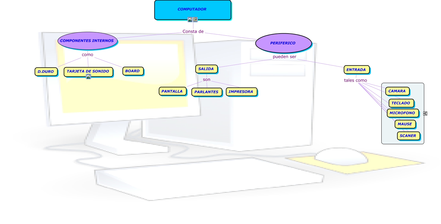 Este Cmap, tiene información relacionada con: cmap computador, ENTRADA tales como TECLADO, ENTRADA tales como SCANER, COMPUTADOR Consta de PERIFERICO, ENTRADA tales como MAUSE, PERIFERICO pueden ser ENTRADA, COMPUTADOR Consta de COMPONENTES INTERNOS, ENTRADA tales como SCANER, ENTRADA tales como CAMARA, COMPONENTES INTERNOS como TARJETA DE SONIDO, SALIDA son PANTALLA, SALIDA son IMPRESORA, SALIDA son PARLANTES, ENTRADA tales como MICROFONO, COMPONENTES INTERNOS como D.DURO, PERIFERICO pueden ser SALIDA, ENTRADA tales como SCANER, COMPONENTES INTERNOS como BOARD, ENTRADA tales como SCANER