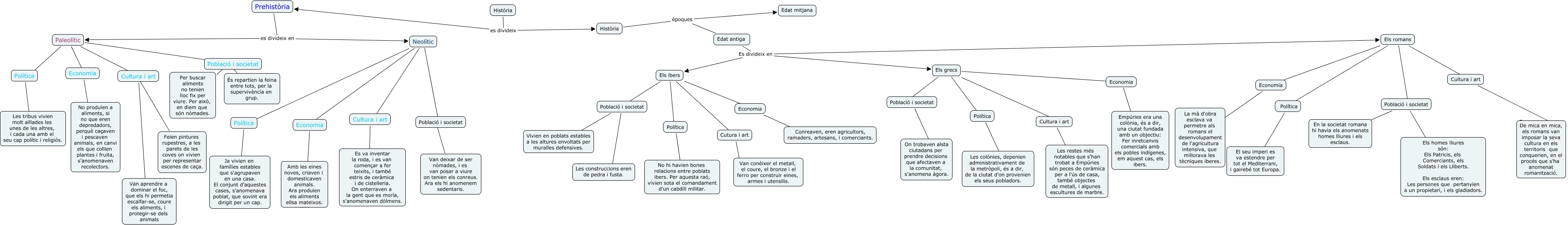 This Concept Map, created with IHMC CmapTools, has information related to: Història Sheila, Població i societat ???? Vivien en poblats estables a les altures envoltats per muralles defensives., Política ???? Les colònies, depenien administrativament de la metròpoli, és a dir, de la ciutat d'on provenien els seus pobladors., Neolític ???? Població i societat, Història es divideix Prehistòria, Economia ???? Conreaven, eren agricultors, ramaders, artesans, i comerciants., Cultura i art ???? Van aprendre a dominar el foc, que els hi permetia escalfar-se, coure els aliments, i protegir-se dels animals, Els ibers ???? Política, Història èpoques Edat mitjana, Edat antiga Es divideix en Els ibers, Els grecs ???? Població i societat, Paleolític ???? Política, Els ibers ???? Cutura i art, Paleolític ???? Feien pintures rupestres, a les parets de les coves on vivien per representar escenes de caça., Edat antiga Es divideix en Els romans, Població i societat ???? Les construccions eren de pedra i fusta., Els romans ???? Economia, Economia ???? No produïen a aliments, si no que eren depredadors, perquè caçaven i pescaven animals, en canvi els que collien plantes i fruita, s'anomenaven recolectors., Població i societat ???? Per buscar aliments no tenien lloc fix per viure. Per això, en diem que són nòmades., Economia ???? Empúries era una colònia, és a dir, una ciutat fundada amb un objectiu: Fer inretcanvis comercials amb els pobles indígenes, em aquest cas, els ibers., Història èpoques Edat antiga
