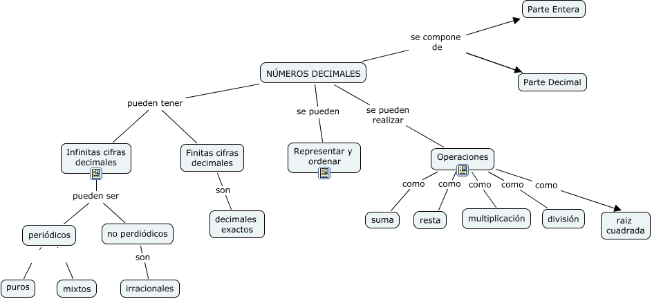 Este Cmap, tiene información relacionada con: mapa decimales, periódicos puros, Operaciones como multiplicación, Operaciones como división, Infinitas cifras decimales pueden ser no perdiódicos, NÚMEROS DECIMALES se pueden realizar Operaciones, periódicos mixtos, NÚMEROS DECIMALES se compone de Parte Decimal, Operaciones como resta, no perdiódicos son irracionales, Operaciones como raiz cuadrada, NÚMEROS DECIMALES se pueden Representar y ordenar, Finitas cifras decimales pueden tener Infinitas cifras decimales, Operaciones como suma, Parte Decimal se compone de Parte Entera, NÚMEROS DECIMALES se compone de Parte Entera, Infinitas cifras decimales pueden ser periódicos, NÚMEROS DECIMALES pueden tener Infinitas cifras decimales, Finitas cifras decimales son decimales exactos