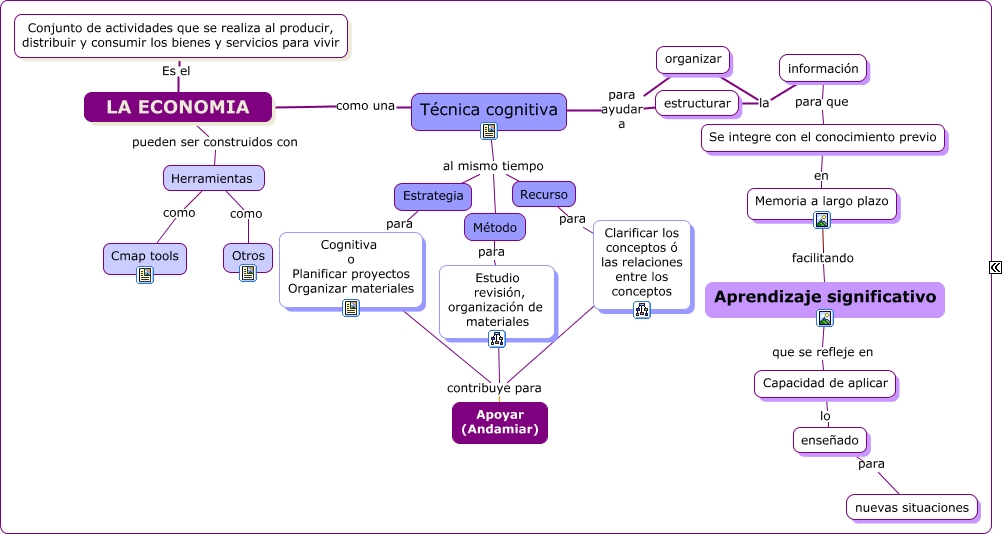 Este Cmap, tiene información relacionada con: mapaconceptualestrategia_traduccion, Técnica cognitiva al mismo tiempo Recurso, información para que Se integre con el conocimiento previo, Técnica cognitiva para ayudar a estructurar, Clarificar los conceptos ó las relaciones entre los conceptos contribuye para Apoyar (Andamiar), Se integre con el conocimiento previo en Memoria a largo plazo, Técnica cognitiva al mismo tiempo Estrategia, Herramientas como Cmap tools, Estudio revisión, organización de materiales contribuye para Apoyar (Andamiar), Capacidad de aplicar lo enseñado, organizar la información, Memoria a largo plazo facilitando Aprendizaje significativo, LA ECONOMIA Es el Conjunto de actividades que se realiza al producir, distribuir y consumir los bienes y servicios para vivir, Herramientas como Otros, enseñado para nuevas situaciones, Recurso para Clarificar los conceptos ó las relaciones entre los conceptos, Aprendizaje significativo que se refleje en Capacidad de aplicar, Técnica cognitiva para ayudar a organizar, Estrategia para Cognitiva o Planificar proyectos Organizar materiales, Técnica cognitiva al mismo tiempo Método, estructurar la información