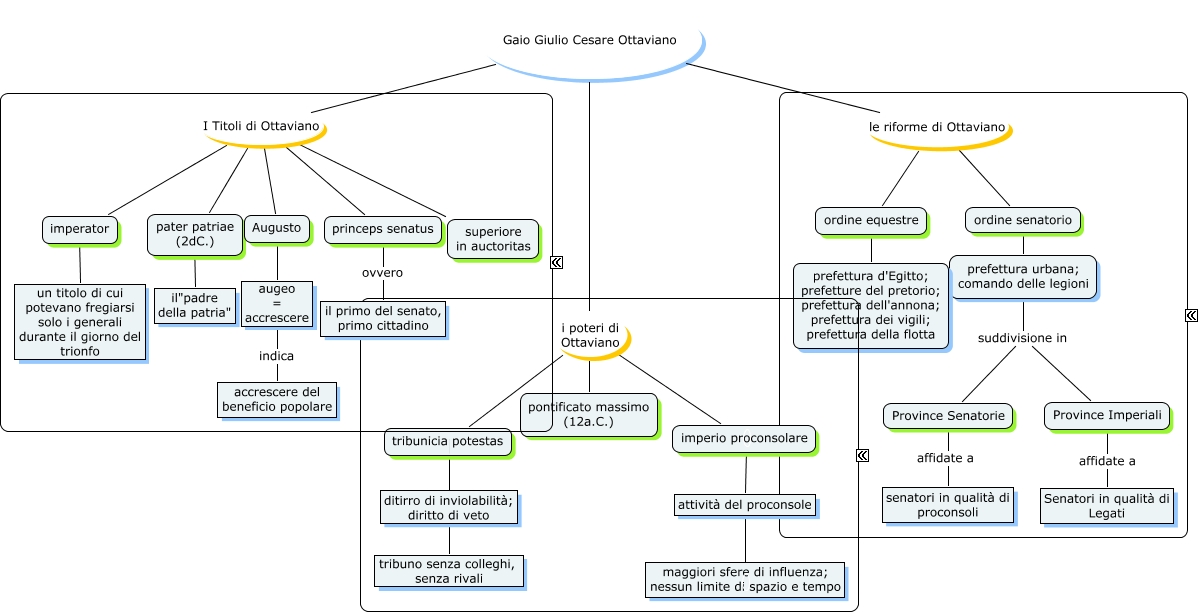 Questa Cmap, creata con IHMC CmapTools, contiene informazioni relative a: Titoli, Poteri e Riforme di Ottaviano. (Sonzogni), Province Imperiali affidate a Senatori in qualità di Legati, imperio proconsolare attività del proconsole, Gaio Giulio Cesare Ottaviano le riforme di Ottaviano ordine senatorio, Gaio Giulio Cesare Ottaviano le riforme di Ottaviano ordine equestre, ditirro di inviolabilità; diritto di veto tribuno senza colleghi, senza rivali, Province Senatorie affidate a senatori in qualità di proconsoli, ordine equestre ???? prefettura d'Egitto; prefetture del pretorio; prefettura dell'annona; prefettura dei vigili; prefettura della flotta, attività del proconsole maggiori sfere di influenza; nessun limite di spazio e tempo, Gaio Giulio Cesare Ottaviano i poteri di Ottaviano imperio proconsolare, Gaio Giulio Cesare Ottaviano I Titoli di Ottaviano Augusto, prefettura urbana; comando delle legioni suddivisione in Province Senatorie, prefettura urbana; comando delle legioni suddivisione in Province Imperiali, augeo = accrescere indica accrescere del beneficio popolare, pater patriae (2dC.) il"padre della patria", Gaio Giulio Cesare Ottaviano i poteri di Ottaviano pontificato massimo (12a.C.), Gaio Giulio Cesare Ottaviano I Titoli di Ottaviano superiore in auctoritas, Gaio Giulio Cesare Ottaviano I Titoli di Ottaviano pater patriae (2dC.), tribunicia potestas ???? ditirro di inviolabilità; diritto di veto, Gaio Giulio Cesare Ottaviano I Titoli di Ottaviano imperator, Gaio Giulio Cesare Ottaviano i poteri di Ottaviano tribunicia potestas