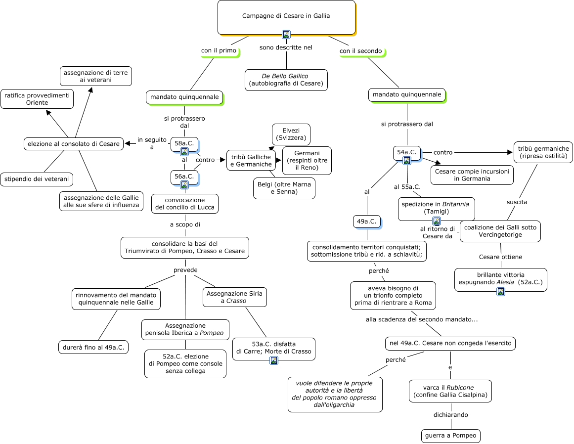Questa Cmap, creata con IHMC CmapTools, contiene informazioni relative a: Successi di Cesare in Gallia (Sonzogni), nel 49a.C. Cesare non congeda l'esercito perché vuole difendere le proprie autorità e la libertà del popolo romano oppresso dall'oligarchia, Assegnazione penisola Iberica a Pompeo ???? 52a.C. elezione di Pompeo come console senza collega, convocazione del concilio di Lucca a scopo di consolidare la basi del Triumvirato di Pompeo, Crasso e Cesare, Campagne di Cesare in Gallia con il secondo mandato quinquennale, 58a.C. in seguito a elezione al consolato di Cesare, nel 49a.C. Cesare non congeda l'esercito e varca il Rubicone (confine Gallia Cisalpina), varca il Rubicone (confine Gallia Cisalpina) dichiarando guerra a Pompeo, 54a.C. al 49a.C., tribù Galliche e Germaniche ???? Belgi (oltre Marna e Senna), consolidare la basi del Triumvirato di Pompeo, Crasso e Cesare prevede Assegnazione penisola Iberica a Pompeo, 54a.C. contro tribù germaniche (ripresa ostilità), mandato quinquennale si protrassero dal 54a.C., aveva bisogno di un trionfo completo prima di rientrare a Roma alla scadenza del secondo mandato... nel 49a.C. Cesare non congeda l'esercito, tribù Galliche e Germaniche ???? Elvezi (Svizzera), tribù germaniche (ripresa ostilità) suscita coalizione dei Galli sotto Vercingetorige, 56a.C. contro tribù Galliche e Germaniche, consolidare la basi del Triumvirato di Pompeo, Crasso e Cesare prevede rinnovamento del mandato quinquennale nelle Gallie, consolidamento territori conquistati; sottomissione tribù e rid. a schiavitù; perché aveva bisogno di un trionfo completo prima di rientrare a Roma, elezione al consolato di Cesare ???? stipendio dei veterani, 49a.C. ???? consolidamento territori conquistati; sottomissione tribù e rid. a schiavitù;