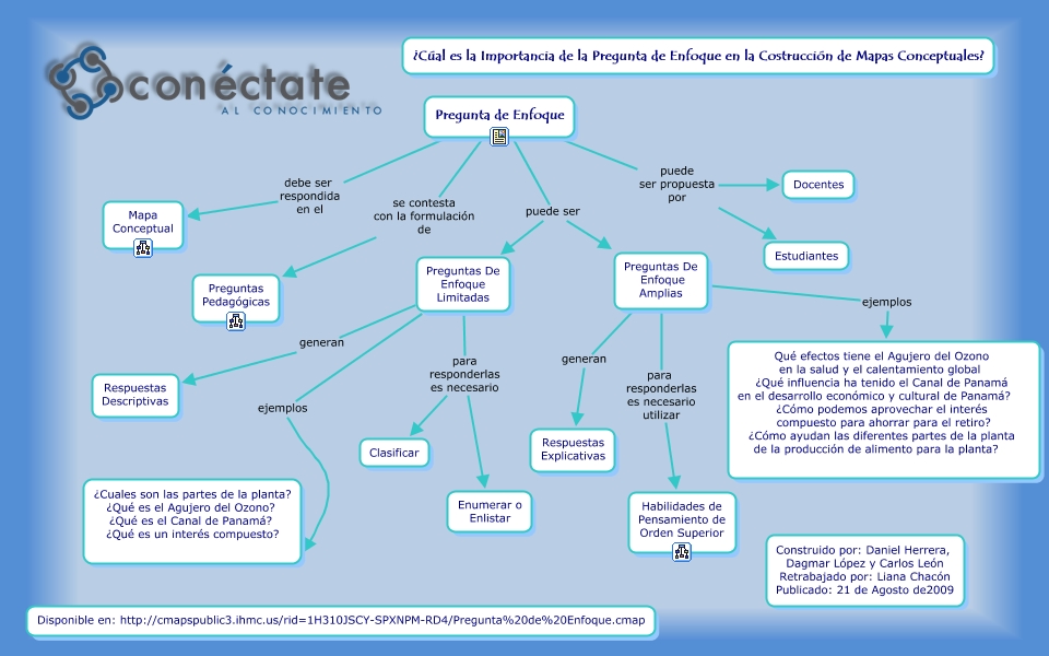Este Cmap, tiene información relacionada con: Preguntas de enfoque mapa, Pregunta de Enfoque se contesta con la formulación de Preguntas Pedagógicas, Pregunta de Enfoque puede ser Preguntas De Enfoque Amplias, Pregunta de Enfoque puede ser propuesta por Docentes, Preguntas De Enfoque Limitadas ejemplos ¿Cuales son las partes de la planta? ¿Qué es el Agujero del Ozono? ¿Qué es el Canal de Panamá? ¿Qué es un interés compuesto?, Preguntas De Enfoque Amplias ejemplos Qué efectos tiene el Agujero del Ozono en la salud y el calentamiento global ¿Qué influencia ha tenido el Canal de Panamá en el desarrollo económico y cultural de Panamá? ¿Cómo podemos aprovechar el interés compuesto para ahorrar para el retiro? ¿Cómo ayudan las diferentes partes de la planta de la producción de alimento para la planta?, Pregunta de Enfoque puede ser Preguntas De Enfoque Limitadas, Pregunta de Enfoque debe ser respondida en el Mapa Conceptual, Pregunta de Enfoque puede ser propuesta por Estudiantes, Preguntas De Enfoque Limitadas para responderlas es necesario Clasificar, Preguntas De Enfoque Limitadas generan Respuestas Descriptivas, Preguntas De Enfoque Amplias para responderlas es necesario utilizar Habilidades de Pensamiento de Orden Superior, Preguntas De Enfoque Amplias generan Respuestas Explicativas, Preguntas De Enfoque Limitadas para responderlas es necesario Enumerar o Enlistar