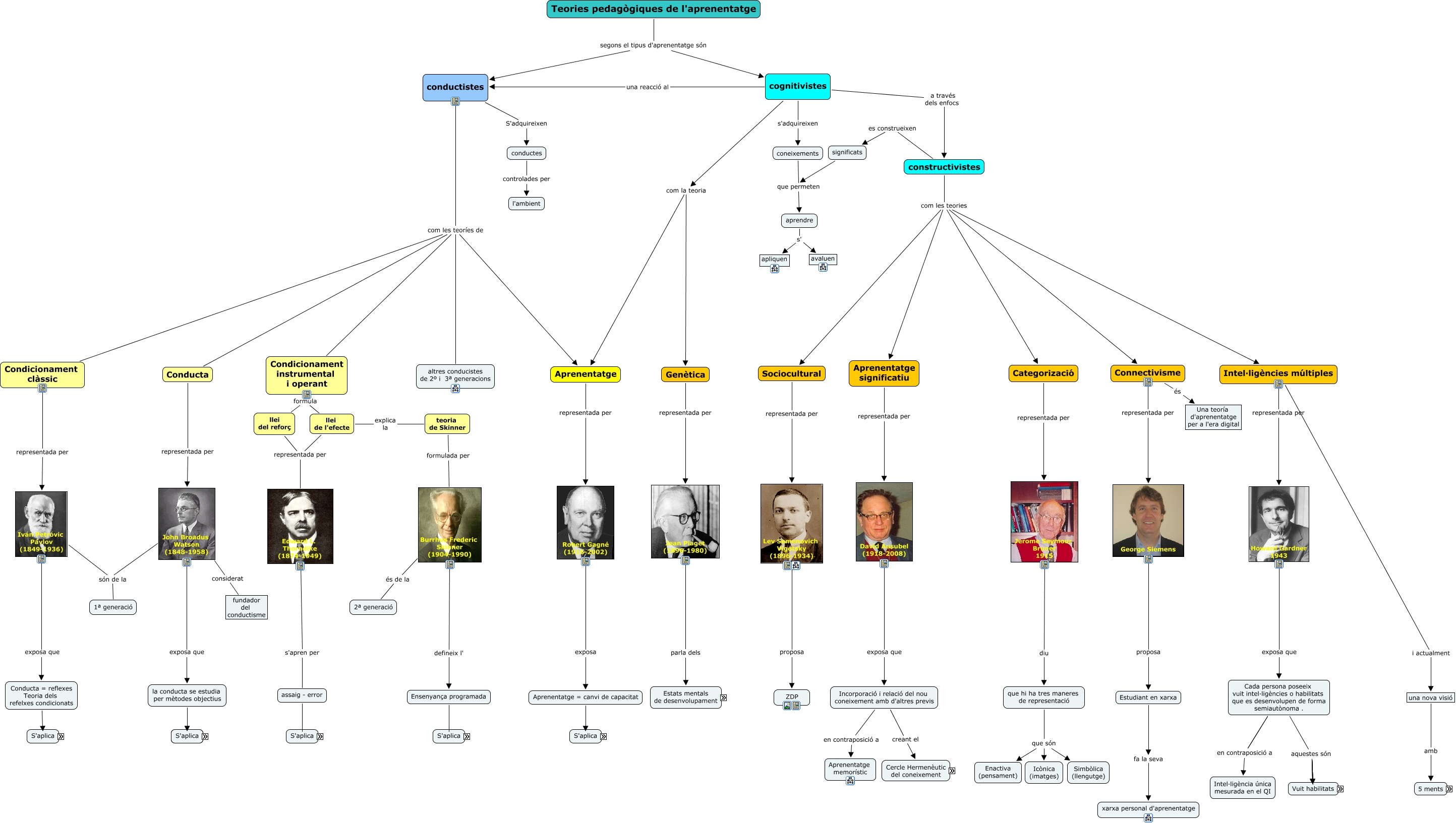 Este Cmap, tiene información relacionada con: Montero_1, èxits per futurs aprenentatges, conductistes com les teoríes de Condicionament clàssic, Burrhus Frederic Skinner (1904-1990) defineix l' Ensenyança programada, Aprenentatge = canvi de capacitat on professor, Preoperacional (2-7 anys) es desenvolupa el llenguatge, Robert Gagné (1916-2002) exposa Aprenentatge = canvi de capacitat, conductistes S'adquireixen conductes, Habilitat intrapersonal es caracteritza per Facilitat d'autoconeixement. Autoconscienciació dels seus sentiments i pensaments., constructivistes com les teories Categorizació, les 5 ments són ètica, Concret operacional (7-12 anys) es desenvolupa control motor aprenentatge sobre objecte, Teories pedagògiques de l'aprenentatge segons el tipus d'aprenentatge són cognitivistes, reforços traduits com èxits, Formal operacional (12-15 anys) es desenvolupa habilitats sistemàtiques i lógiques de raonament, teoria de Skinner formulada per Burrhus Frederic Skinner (1904-1990), John Broadus Watson (1848-1958) considerat fundador del conductisme, organitzar la informació i implica relacionar-ho amb d'altres coneixements, Cada persona poseeix vuit intel·ligències o habilitats que es desenvolupen de forma semiautònoma . aquestes són Habilitat visual i espaial, Connectivisme és Una teoría d'aprenentatge per a l'era digital, constructivistes es construeixen significats