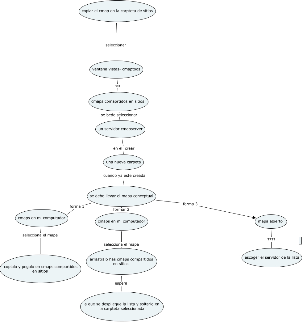 Este Cmap, tiene información relacionada con: publicar carpeta en sitios, se debe llevar el mapa conceptual formar 2 cmaps en mi computador, ventana vistas- cmaptoos en cmaps comaprtidos en sitios, copiar el cmap en la carpteta de sitios seleccionar ventana vistas- cmaptoos, se debe llevar el mapa conceptual forma 3 mapa abierto, cmaps comaprtidos en sitios se bede seleccionar un servidor cmapserver, cmaps en mi computador selecciona el mapa arrastralo has cmaps compartidos en sitios, se debe llevar el mapa conceptual forma 1 cmaps en mi computador, un servidor cmapserver en el crear una nueva carpeta, se debe llevar el mapa conceptual formar 2 cmaps en mi computador, una nueva carpeta cuando ya este creada se debe llevar el mapa conceptual, arrastralo has cmaps compartidos en sitios espera a que se despliegue la lista y soltarlo en la carpteta seleccionada, mapa abierto ???? escoger el servidor de la lista, cmaps en mi computador selecciona el mapa copialo y pegalo en cmaps compartidos en sitios