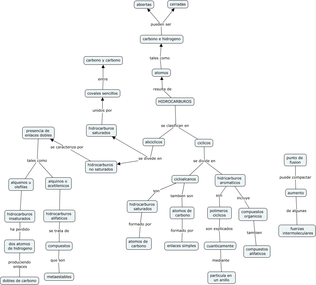 Este Cmap, tiene información relacionada con: hidrocarburos cristina bernal y asleidy navisoy 11.b, atomos tales como carbono e hidrogeno, hidrocarburos saturados formado por atomos de carbono, hidrocarburos saturados unidos por covales sencillos, HIDROCARBUROS resulta de atomos, punto de fusion puede compactar aumento, ciclicos se divide en cicloalcanos, hidrocarburos insaturados ha perdido dos atomos de hidrogeno, presencia de enlaces dobles tales como alquinos o acetilenicos, hidrocarburos no saturados se caracteriza por presencia de enlaces dobles, cuanticamente mediante particula en un anillo, ciclicos se divide en hidricarburos aromaticos, compuestos organicos tambien compuestos alifaticos, covales sencillos entre carbono y carbono, dos atomos de hidrogeno produciendo enlaces dobles de carbono, aliciclicos se divede en hidrocarburos saturados, cicloalcanos tambien son atomos de carbono, HIDROCARBUROS se clasifican en ciclicos, hidricarburos aromaticos incluye compuestos organicos, HIDROCARBUROS se clasifican en aliciclicos, aumento de algunas fuerzas intermoleculares