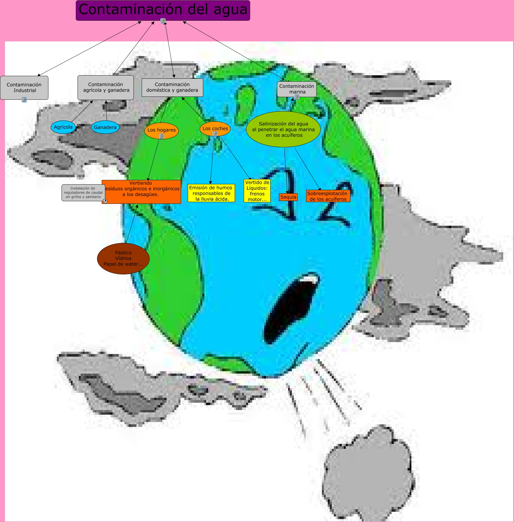 Este Cmap, tiene información relacionada con: Contaminación del agua actividad 10, Contaminación del agua ???? Contaminación doméstica y ganadera, Los coches ???? Emisión de humos responsables de la lluvia ácida., Los hogares ???? Vertiendo resíduos orgánicos e inorgánicos a los desagües., Contaminación agrícola y ganadera ???? Ganadera, Contaminación del agua ???? Contaminación agrícola y ganadera, Contaminación agrícola y ganadera ???? Agrícola, Instalación de reguladores de caudal en grifos y sanitario ???? Vertiendo resíduos orgánicos e inorgánicos a los desagües., Contaminación marina ???? Salinización del agua al penetrar el agua marina en los acuíferos, Contaminación doméstica y ganadera ???? Los hogares, Contaminación doméstica y ganadera ???? Los coches, Salinización del agua al penetrar el agua marina en los acuíferos ???? Sobreesplotación de los acuíferos, Contaminación del agua ???? Contaminación Industrial, Salinización del agua al penetrar el agua marina en los acuíferos ???? Sequía, Los coches ???? Vertido de Líquidos: frenos motor..., Contaminación del agua ???? Contaminación marina
