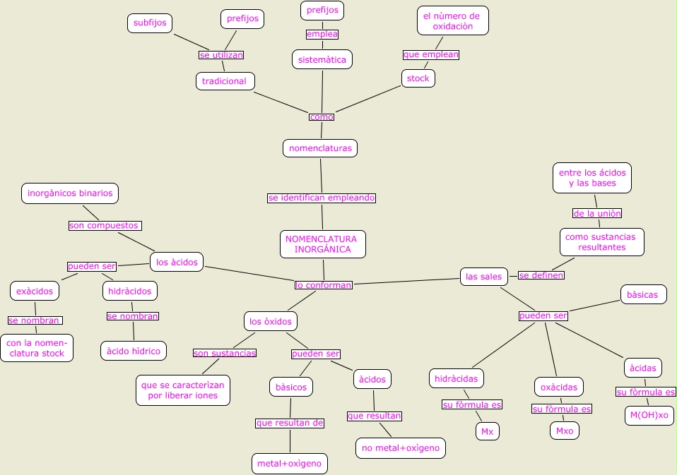 Este Cmap, tiene información relacionada con: LEIDY FERNANDA GARCÌA (DÈCIMO B), los òxidos son sustancias que se caracterìzan por liberar iones, àcidos que resultan no metal+oxìgeno, las sales pueden ser oxàcidas, bàsicos que resultan de metal+oxìgeno, tradicional se utilizan prefijos, hidràcidos se nombran àcido hìdrico, las sales se definen como sustancias resultantes, NOMENCLATURA INORGÁNICA lo conforman los òxidos, como sustancias resultantes de la uniòn entre los ácidos y las bases, los àcidos son compuestos inorgànicos binarios, nomenclaturas como tradicional, los àcidos pueden ser hidràcidos, los àcidos pueden ser exàcidos, NOMENCLATURA INORGÁNICA se identifican empleando nomenclaturas, nomenclaturas como stock, oxàcidas su fòrmula es Mxo, los òxidos pueden ser àcidos, las sales pueden ser àcidas, stock que emplean el nùmero de oxidaciòn, hidràcidas su fòrmula es Mx