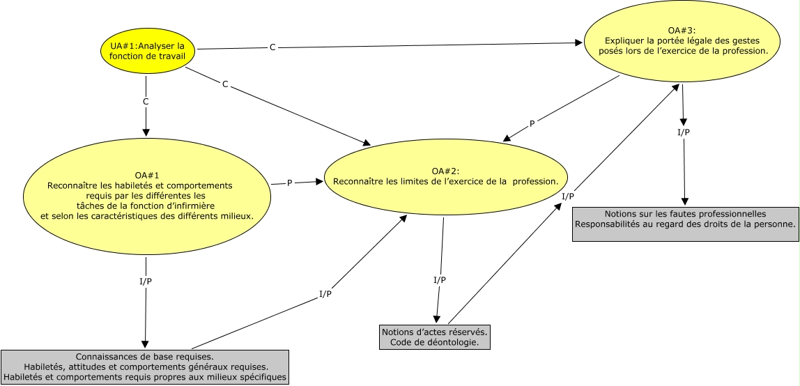Cette carte de concepts créée avec IHMC CmapTools traite de: UA1, UA#1:Analyser la fonction de travail C OA#3: Expliquer la portée légale des gestes posés lors de l’exercice de la profession., OA#1 Reconnaître les habiletés et comportements requis par les différentes les tâches de la fonction d’infirmière et selon les caractéristiques des différents milieux. P OA#2: Reconnaître les limites de l’exercice de la profession., UA#1:Analyser la fonction de travail C OA#1 Reconnaître les habiletés et comportements requis par les différentes les tâches de la fonction d’infirmière et selon les caractéristiques des différents milieux., Notions d’actes réservés. Code de déontologie. I/P OA#3: Expliquer la portée légale des gestes posés lors de l’exercice de la profession., OA#2: Reconnaître les limites de l’exercice de la profession. I/P Notions d’actes réservés. Code de déontologie., Connaissances de base requises. Habiletés, attitudes et comportements généraux requises. Habiletés et comportements requis propres aux milieux spécifiques I/P OA#2: Reconnaître les limites de l’exercice de la profession., OA#3: Expliquer la portée légale des gestes posés lors de l’exercice de la profession. P OA#2: Reconnaître les limites de l’exercice de la profession., OA#3: Expliquer la portée légale des gestes posés lors de l’exercice de la profession. I/P Notions sur les fautes professionnelles Responsabilités au regard des droits de la personne., OA#1 Reconnaître les habiletés et comportements requis par les différentes les tâches de la fonction d’infirmière et selon les caractéristiques des différents milieux. I/P Connaissances de base requises. Habiletés, attitudes et comportements généraux requises. Habiletés et comportements requis propres aux milieux spécifiques, UA#1:Analyser la fonction de travail C OA#2: Reconnaître les limites de l’exercice de la profession.