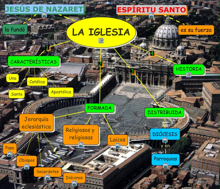 Este Cmap, tiene información relacionada con: La Iglesia, LA IGLESIA JESÚS DE NAZARET la fundó, LA IGLESIA JESÚS DE NAZARET la fundó, CARACTERÍSTICAS ???? Católica, LA IGLESIA 4 HISTORIA, CARACTERÍSTICAS ???? Santa, DIÓCESIS y en Parroquias, FORMADA ???? Laicos, FORMADA ???? Jerarquía eclesiástica, Jerarquía eclesiástica ???? Obispos, LA IGLESIA ESPÍRITU SANTO es su fuerza, DISTRIBUIDA en DIÓCESIS, LA IGLESIA 2 FORMADA, Jerarquía eclesiástica P Papa, Jerarquía eclesiástica ???? Sacerdotes, CARACTERÍSTICAS ???? Apostólica, FORMADA Religiosos y religiosas, Jerarquía eclesiástica ???? Diáconos, LA IGLESIA 1 CARACTERÍSTICAS, CARACTERÍSTICAS ???? Una, LA IGLESIA 3 DISTRIBUIDA