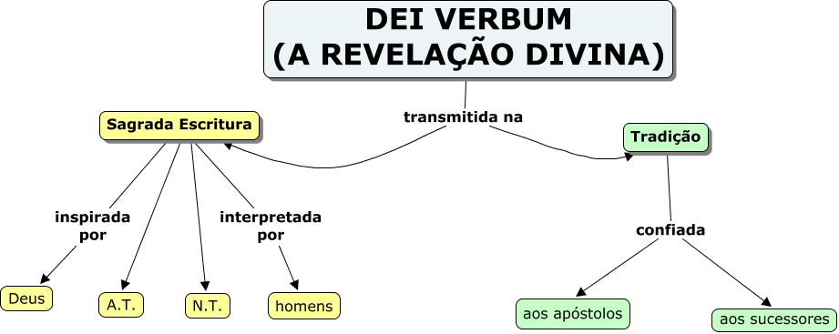 Questa Mappa Concettuale ha informazioni correlate a: Dei Verbum, Tradição confiada aos sucessores, Tradição confiada aos apóstolos, Sagrada Escritura inspirada por Deus, Sagrada Escritura ???? N.T., DEI VERBUM (A REVELAÇÃO DIVINA) transmitida na Sagrada Escritura, DEI VERBUM (A REVELAÇÃO DIVINA) transmitida na Tradição, Sagrada Escritura ???? A.T., Sagrada Escritura interpretada por homens