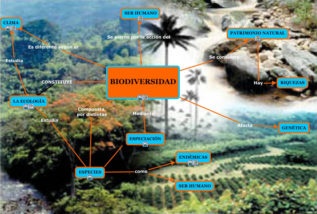 Este Cmap, tiene información relacionada con: BIODIVERSIDAD, ESPECIES como ENDÉMICAS, LA ECOLOGÍA Estudia ESPECIES, PATRIMONIO NATURAL Hay RIQUEZAS, BIODIVERSIDAD Se pierde por la acción del SER HUMANO, ESPECIACIÓN Origina ESPECIES, ESPECIES como SER HUMANO, BIODIVERSIDAD Compuesta por distintas ESPECIES, BIODIVERSIDAD Afecta GENÉTICA, BIODIVERSIDAD Se considera PATRIMONIO NATURAL, BIODIVERSIDAD CONSTITUYE LA ECOLOGÍA, BIODIVERSIDAD Mediante ESPECIACIÓN, LA ECOLOGÍA Estudia CLIMA, BIODIVERSIDAD Es diferente según el CLIMA