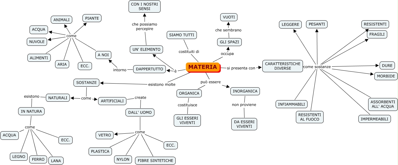 Questa Cmap, creata con IHMC CmapTools, contiene informazioni relative a: MATERIA, CARATTERISTICHE DIVERSE come sostanze IMPERMEABILI, CARATTERISTICHE DIVERSE come sostanze MORBIDE, MATERIA occupa GLI SPAZI, MATERIA esistono molte SOSTANZE, MATERIA è UN' ELEMENTO, CARATTERISTICHE DIVERSE come sostanze ASSORBENTI ALL' ACQUA, CARATTERISTICHE DIVERSE come sostanze RESISTENTI, CARATTERISTICHE DIVERSE come sostanze PESANTI, CARATTERISTICHE DIVERSE come sostanze LEGGERE, A NOI come ANIMALI, SOSTANZE come ARTIFICIALI, A NOI come NUVOLE, MATERIA è DAPPERTUTTO, A NOI come ACQUA, DALL' UOMO come ECC., SIAMO TUTTI costituiti di MATERIA, MATERIA può essere ORGANICA, CARATTERISTICHE DIVERSE come sostanze INFIAMMABILI, CARATTERISTICHE DIVERSE come sostanze RESISTENTI AL FUOCO, CARATTERISTICHE DIVERSE come sostanze DURE