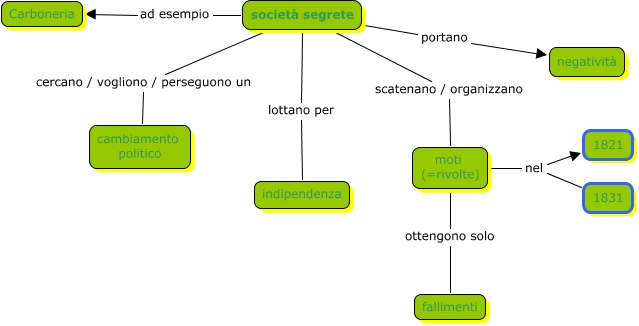 Questa Cmap, creata con IHMC CmapTools, contiene informazioni relative a: LE SOCIETà SEGRETE, moti (=rivolte) ottengono solo fallimenti, società segrete scatenano / organizzano moti (=rivolte), società segrete ad esempio Carboneria, società segrete portano negatività, società segrete cercano / vogliono / perseguono un cambiamento politico, moti (=rivolte) nel 1821, società segrete lottano per indipendenza, moti (=rivolte) nel 1831