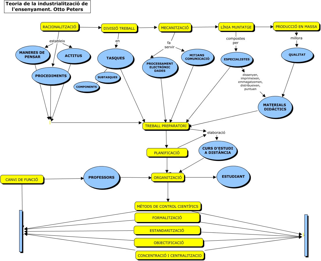 Este Cmap, tiene información relacionada con: PAC2.us de les TIC.otto peters, ESTANDARITZACIÓ, MECANITZACIÓ ???? LÍNIA MUNTATGE, TREBALL PREPARATORI elaboració CURS D'ESTUDI A DISTÀNCIA, ORGANITZACIÓ ???? ESTUDIANT, ORGANITZACIÓ ???? MÈTODS DE CONTROL CIENTÍFICS, RACIONALITZACIÓ estableix MANERES DE PENSAR, PROCESSAMENT ELECTRÒNIC DADES ???? TREBALL PREPARATORI, ACTITUS TREBALL PREPARATORI, QUALITAT ???? MATERIALS DIDÀCTICS, ESPECIALISTES ???? TREBALL PREPARATORI, CANVI DE FUNCIÓ ???? PROFESSORS, PROFESSORS ???? ORGANITZACIÓ, CURS D'ESTUDI A DISTÀNCIA ???? ORGANITZACIÓ, MECANITZACIÓ fa servir PROCESSAMENT ELECTRÒNIC DADES, MANERES DE PENSAR TREBALL PREPARATORI, TREBALL PREPARATORI ???? PLANIFICACIÓ, LÍNIA MUNTATGE compostes per ESPECIALISTES, CANVI DE FUNCIÓ, FORMALITZACIÓ, MECANITZACIÓ fa servir MITJANS COMUNICACIÓ