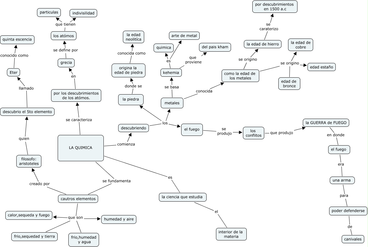 Este Cmap, tiene información relacionada con: trabajo 9-a adriana,luisa,yesika.cmap, la edad de hierro se caraterizo por descubrimientos en 1500 a.c, la GUERRA de FUEGO en donde el fuego, kehemia es quimica, una arma para poder defenderse, descubriendo los metales, metales conocida como la edad de los metales, el fuego era una arma, como la edad de los metales se origino la edad de cobre, por los descubrimientos de los atómos. en grecia, descubriendo los el fuego, metales se basa kehemia, los atómos que tienen particulas, Eter conocido como quinta escencia, LA QUIMICA se caracteriza por los descubrimientos de los atómos., poder defenderse de canivales, descubrio el 5to elemento llamado Eter, kehemia que proviene del pais kham, kehemia es arte de metal, los atómos que tienen indivisilidad, cautros elementos que son calor,sequeda y fuego