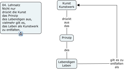 Dieses mit IHMC CmapTools erstellte CMap hat Informationen bezüglich: 04. Lehrsatz, Prinzip des Lebendigen Leben, Kunst Kunstwerk drückt aus das Prinzip, Lebendigen Leben gilt es zu entfalten als Kunst Kunstwerk