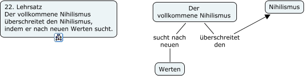 Dieses mit IHMC CmapTools erstellte CMap hat Informationen bezüglich: 22. Lehrsatz, Der vollkommene Nihilismus sucht nach neuen Werten, Der vollkommene Nihilismus überschreitet den Nihilismus