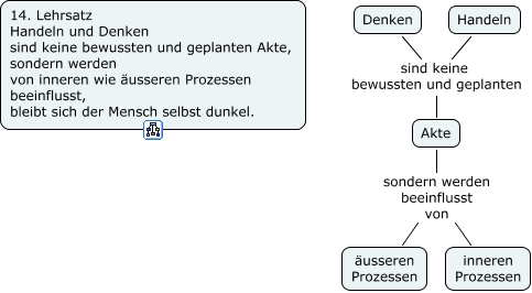 Dieses mit IHMC CmapTools erstellte CMap hat Informationen bezüglich: 14. Lehrsatz, Akte sondern werden beeinflusst von äusseren Prozessen, Handeln sind keine bewussten und geplanten Akte, Akte sondern werden beeinflusst von inneren Prozessen, Denken sind keine bewussten und geplanten Akte