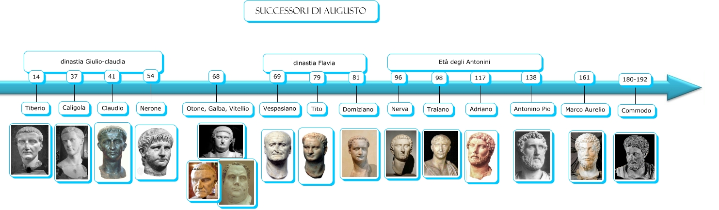 Questa Cmap, creata con IHMC CmapTools, contiene informazioni relative a: i successori di augusto_tassis, 69 ???? Vespasiano, 14 ???? Tiberio, 54 ???? Nerone, 41 ???? Claudio, 37 ???? Caligola, 81 ???? Domiziano, 68 ???? Otone, Galba, Vitellio, 138 ???? Antonino Pio, 79 ???? Tito, 161 ???? Marco Aurelio, 180-192 ???? Commodo, 98 ???? Traiano, 96 ???? Nerva, 117 ???? Adriano