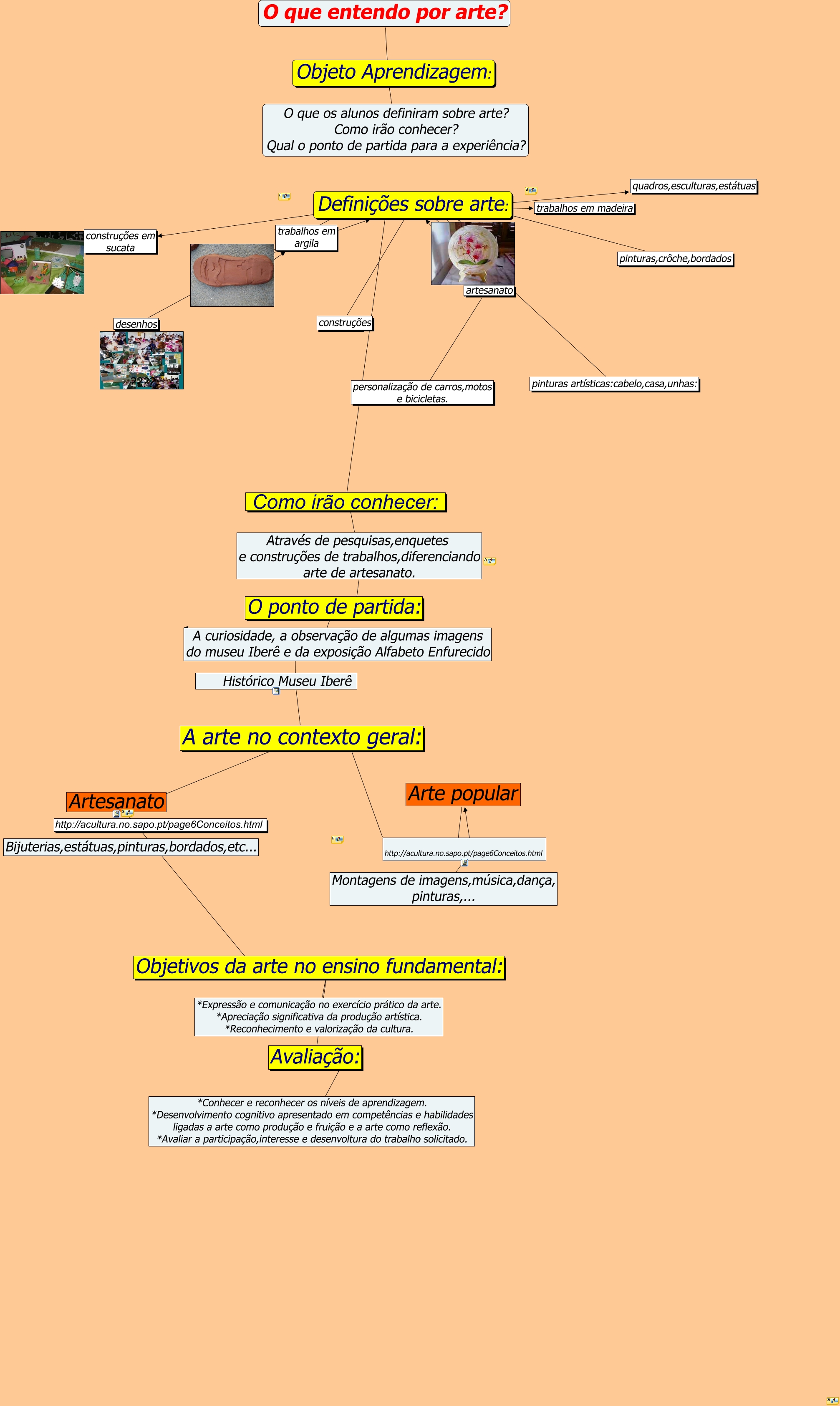 Esse mapa conceitual, produzido no IHMC CmapTools, tem a informação relacionada a: Cópia de Objeto aprendizagem, Definições sobre arte: ???? construções em sucata, artesanato ???? Definições sobre arte:, Definições sobre arte: ???? trabalhos em madeira, A arte no contexto geral: ???? ????, Como irão conhecer: ???? Através de pesquisas,enquetes e construções de trabalhos,diferenciando arte de artesanato., ???? trabalhos em argila, Como irão conhecer: ???? Definições sobre arte:, Definições sobre arte: ???? construções, ???? Definições sobre arte:, A arte no contexto geral: ???? Artesanato, pinturas,crôche,bordados ???? quadros,esculturas,estátuas, personalização de carros,motos e bicicletas. ???? Definições sobre arte:, artesanato ???? Definições sobre arte:, Montagens de imagens,música,dança, pinturas,... ???? Arte popular, O ponto de partida: ???? A curiosidade, a observação de algumas imagens do museu Iberê e da exposição Alfabeto Enfurecido, Definições sobre arte: ???? pinturas artísticas:cabelo,casa,unhas:, *Conhecer e reconhecer os níveis de aprendizagem. *Desenvolvimento cognitivo apresentado em competências e habilidades ligadas a arte como produção e fruição e a arte como reflexão. *Avaliar a participação,interesse e desenvoltura do trabalho solicitado. ???? Avaliação:, ???? ???? Através de pesquisas,enquetes e construções de trabalhos,diferenciando arte de artesanato., pinturas,crôche,bordados ???? Definições sobre arte:, artesanato ???? Definições sobre arte: