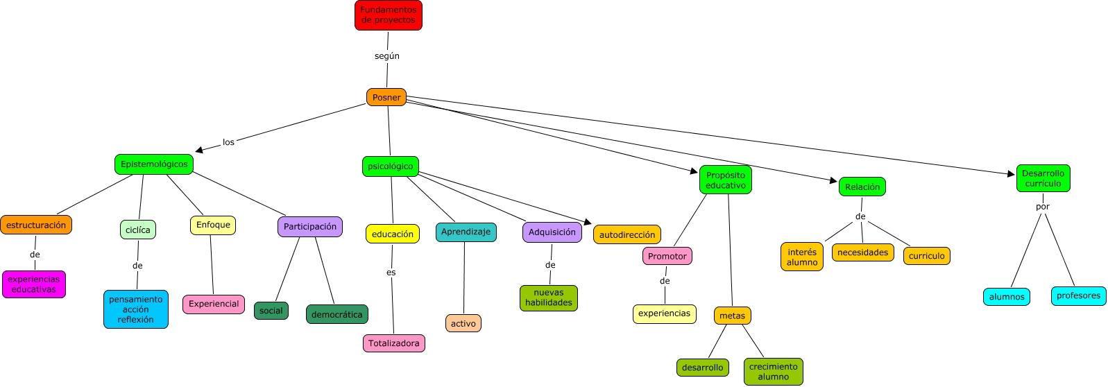 Este Cmap, tiene información relacionada con: Fundamentos de proyectos, Desarrollo currículo por alumnos, psicológico ???? autodirección, Posner ???? psicológico, Enfoque ???? Experiencial, Epistemológicos ???? estructuración, Posner ???? Desarrollo currículo, Propósito educativo ???? metas, Fundamentos de proyectos según Posner, metas ???? crecimiento alumno, psicológico ???? Adquisición, Epistemológicos ???? ciclíca, psicológico ???? educación, Propósito educativo ???? Promotor, Relación de interés alumno, Aprendizaje ???? activo, educación es Totalizadora, estructuración de experiencias educativas, Participación ???? social, Posner los Epistemológicos, Desarrollo currículo por profesores