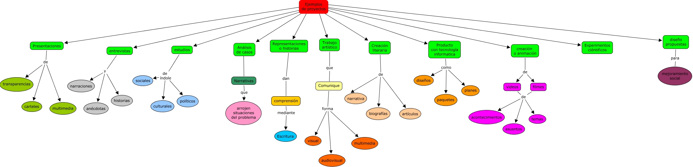 Este Cmap, tiene información relacionada con: Ejemplos de proyectos, Ejemplos de proyectos ???? Creación literaria, filmes de temas, estudios de índole culturales, comprensión mediante Escritura, Comunique forma multimedia, videos de acontecimientos, Ejemplos de proyectos Representaciones o historias, filmes de acontecimientos, Creación literaria de biografías, creación o animación de videos, Ejemplos de proyectos ???? Trabajo artístico, creación o animación de filmes, videos de temas, diseño propuestas para mejoramiento social, estudios de índole políticos, Ejemplos de proyectos ???? Análisis de casos, Producto con tecnología informatica como planes, Trabajo artístico que Comunique, Ejemplos de proyectos ???? estudios, Representaciones o historias dan comprensión