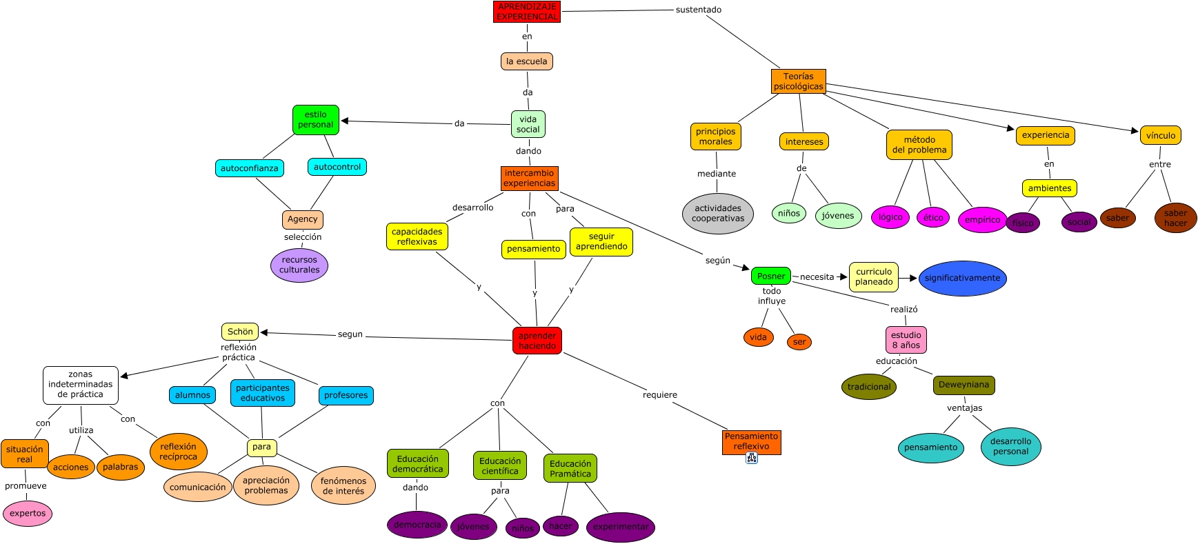 Este Cmap, tiene información relacionada con: Aprendizaje Experiencial, APRENDIZAJE EXPERIENCIAL en la escuela, método del problema ???? empírico, estilo personal ???? autocontrol, Posner realizó estudio 8 años, para ???? comunicación, intercambio experiencias según Posner, vida social dando intercambio experiencias, Posner todo influye ser, Educación democrática dando democracia, vínculo entre saber, aprender haciendo requiere Pensamiento reflexivo, intereses de niños, aprender haciendo con Educación democrática, Schön reflexión práctica zonas indeterminadas de práctica, método del problema ???? ético, curriculo planeado ???? significativamente, pensamiento y aprender haciendo, zonas indeterminadas de práctica con reflexión recíproca, intercambio experiencias desarrollo capacidades reflexivas, intercambio experiencias para seguir aprendiendo